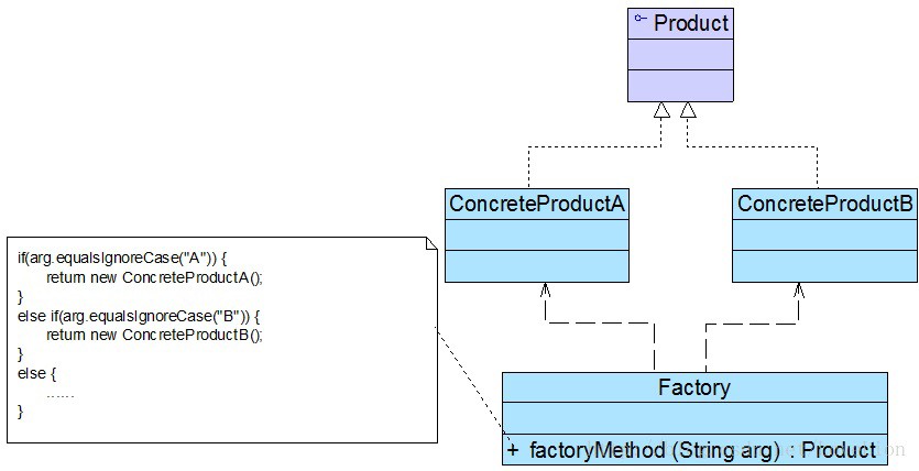 简单工厂模式(Simple Factory Pattern):定义一个工厂类,它可以根据参数的不同返回不同类的实例,被创建的实例通常都具有共同的父类。因为在简单工厂模式中用于创建实例的方法是静态(static)方法,因此简单工厂模式又被称为静态工厂方法(Static Factory Method)模式,它属于类创建型模式。