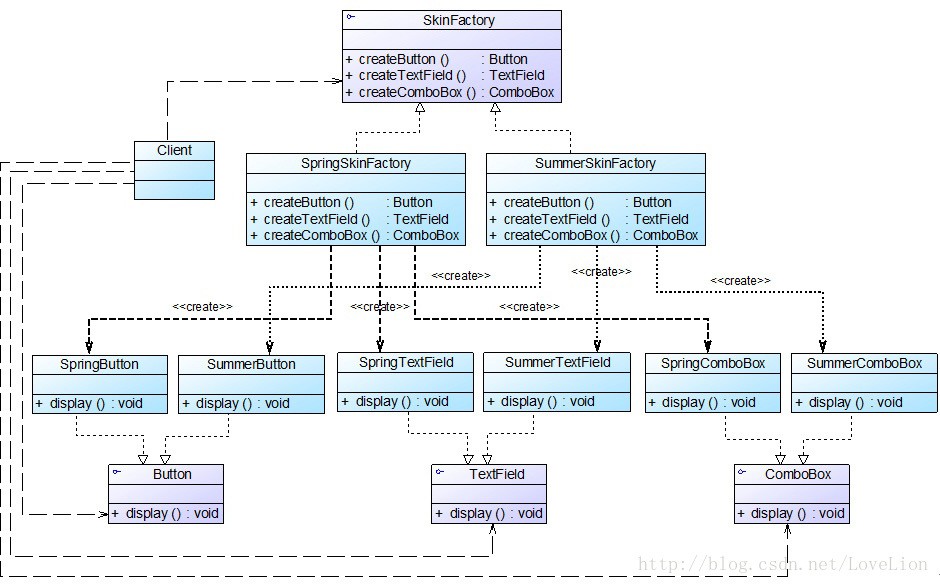 (3) 可以更加精细地控制产品的创建过程。将复杂产品的创建步骤分解在不同的方法中,使得创建过程更加清晰,也更方便使用程序来控制创建过程。