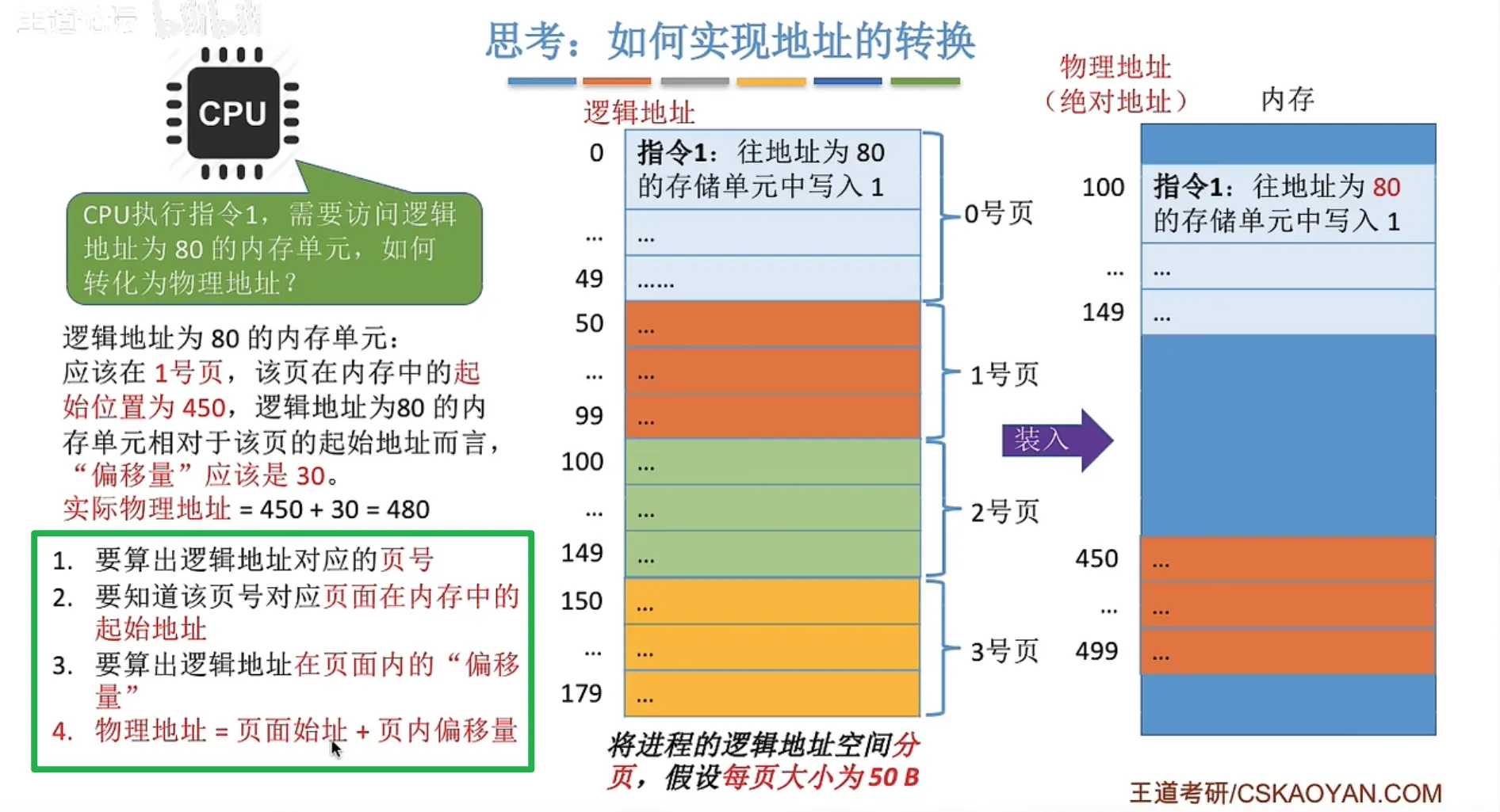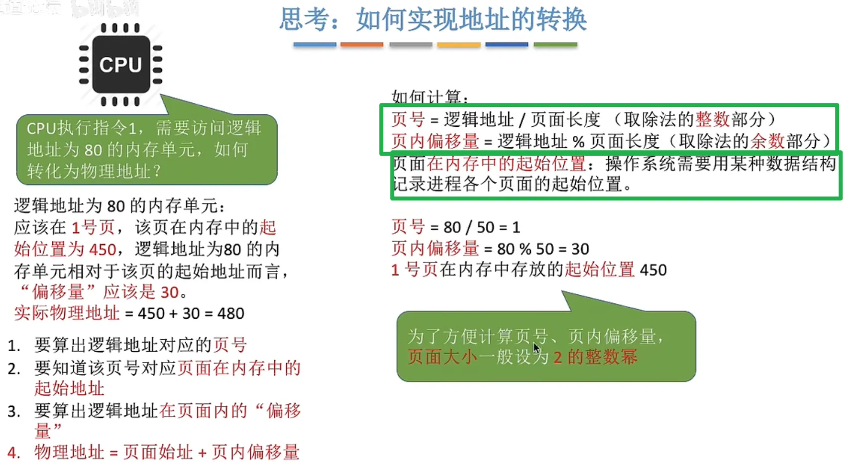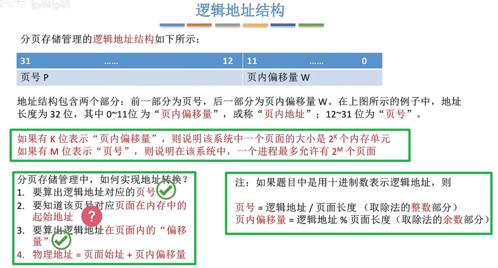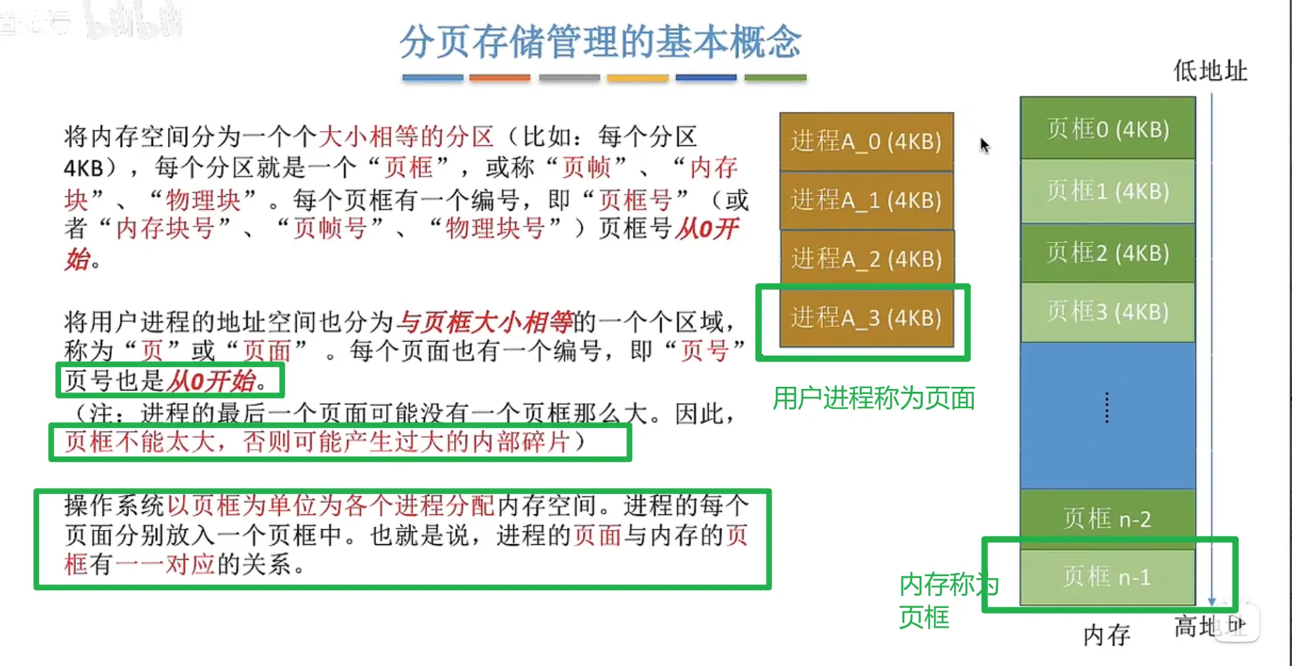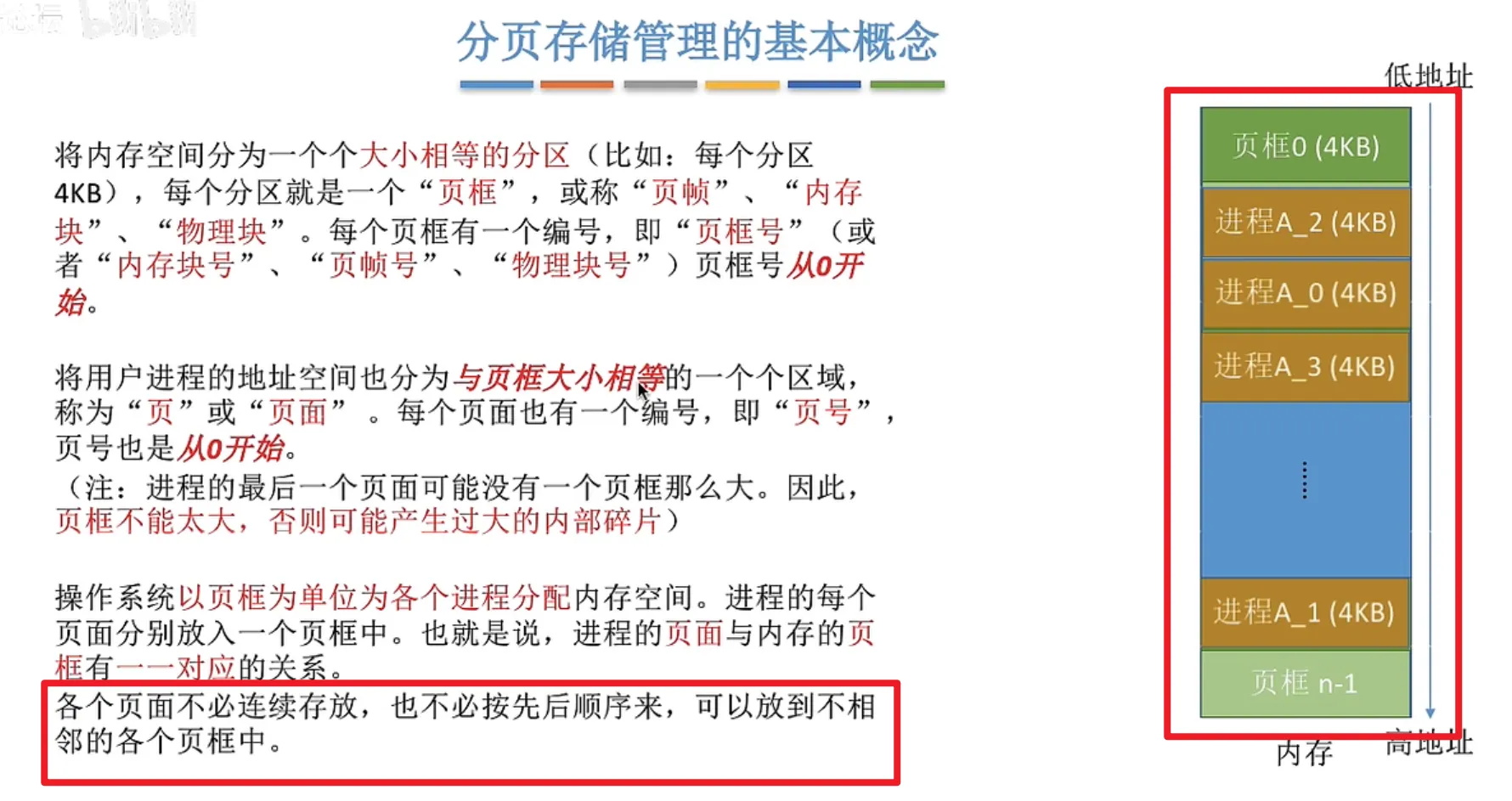 up:: 3.1-5-动态分区分配算法 学习视频 3.1-6-基本分页存储管理的基本概念 笔记 连续分配方式的缺点 固定分区分配改非连续分配 分页存储基本概念 如何实现地址的转换 连续存放时 分页技术,不连续存放 逻辑地址结构 那该如何知道该页在内存中的起始地址嘞? 页表 回顾与总结