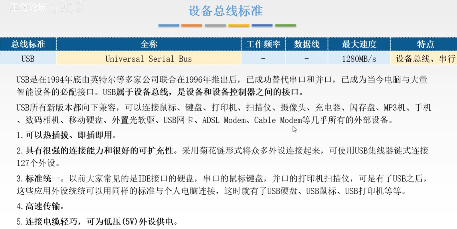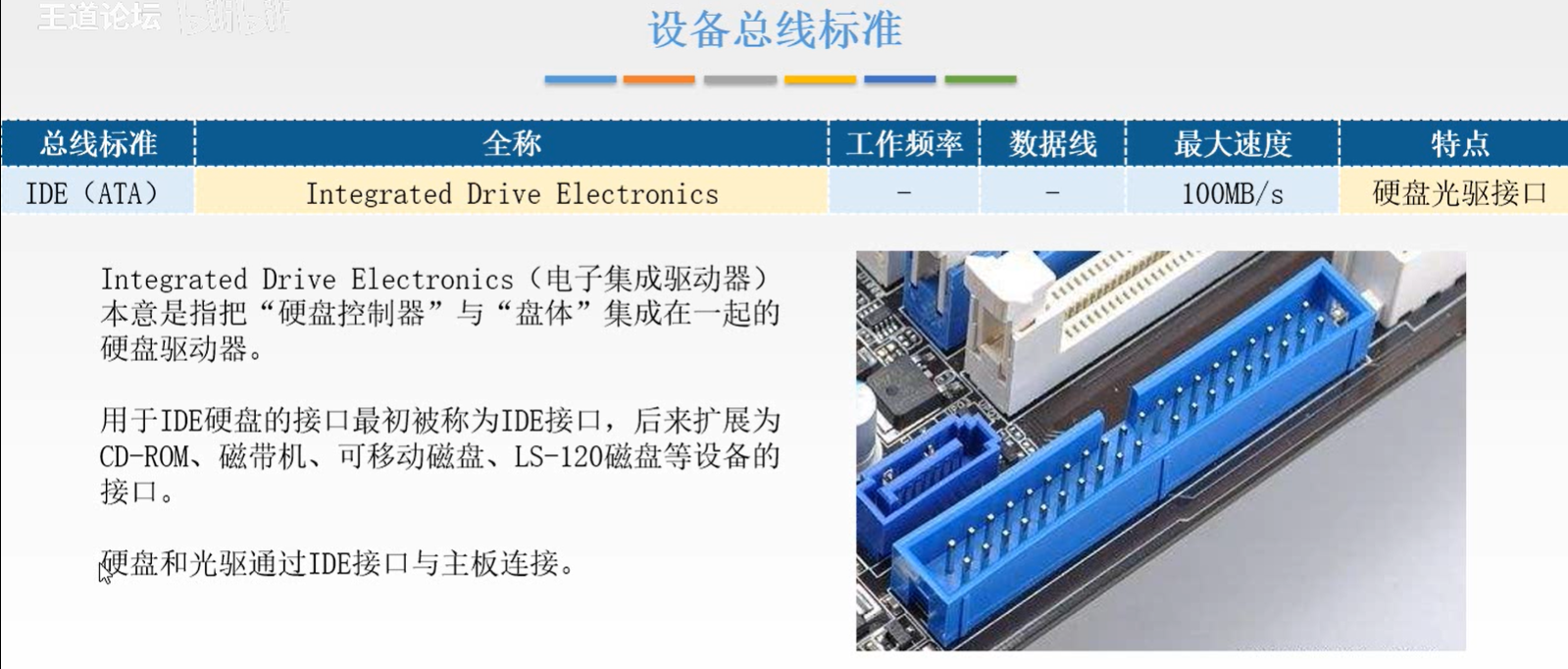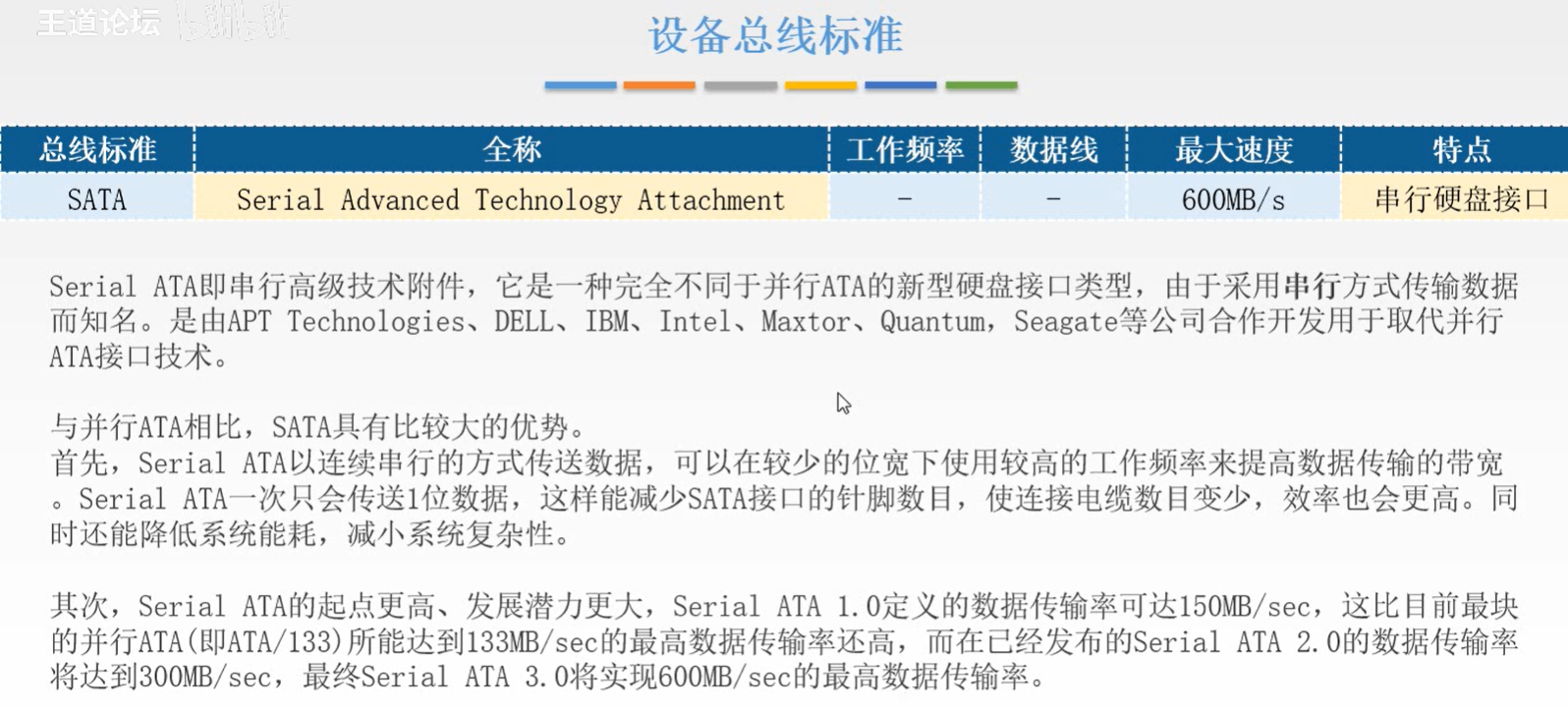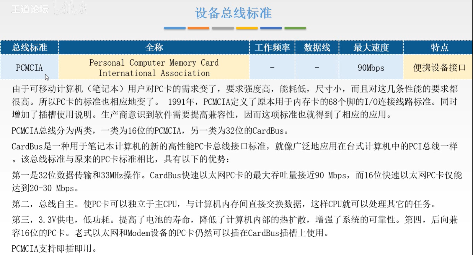 • 设备总线标准:IDE、AGP、RS-232C、USB、SATA、SCSI、 PCMCIA 等。