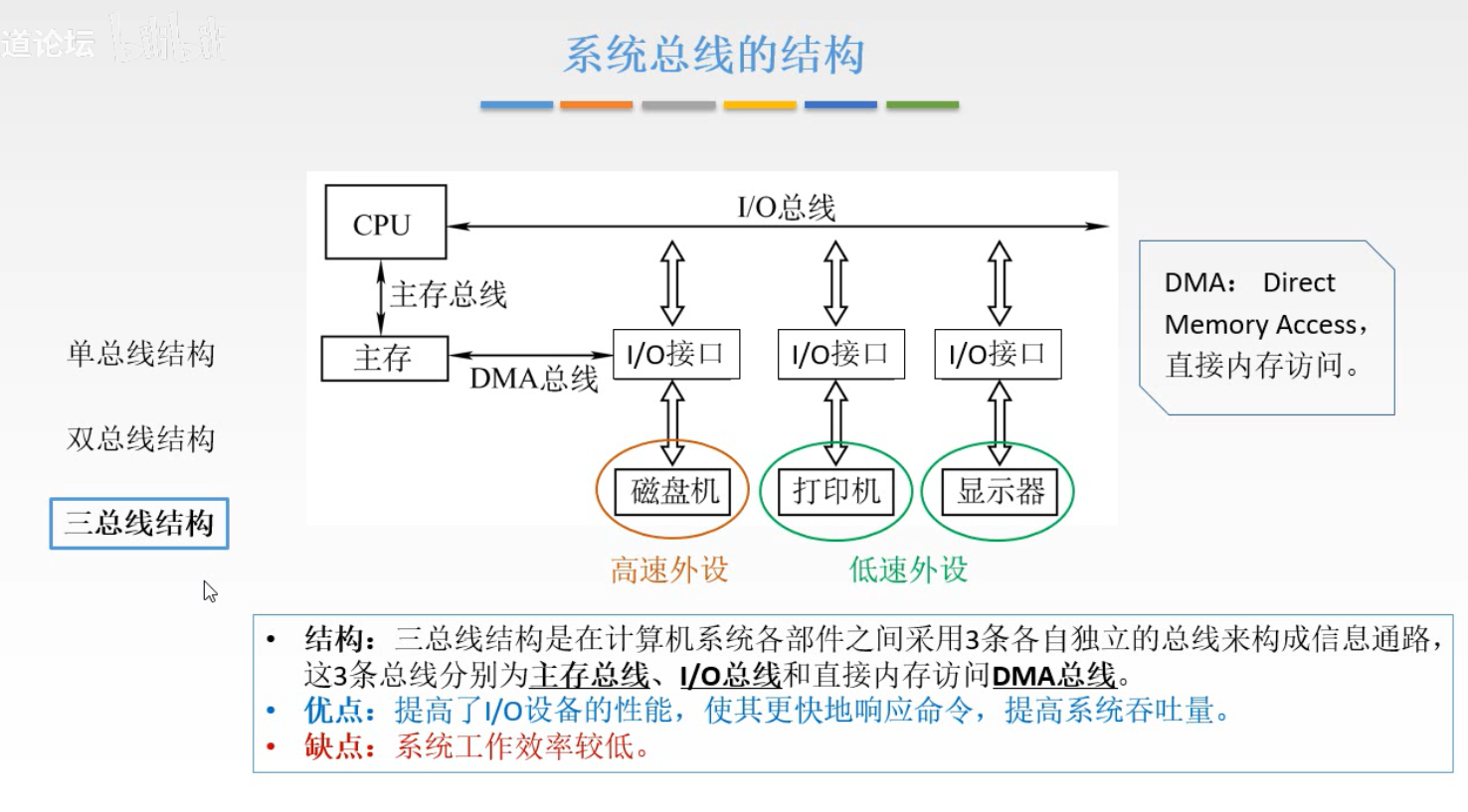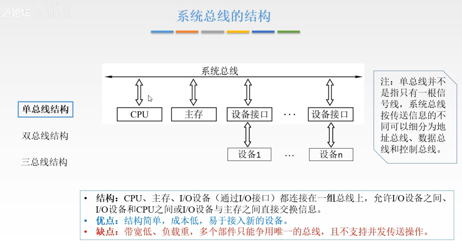 1. 引入总线结构有什么好处? 引入总线结构主要有以下优点 ①简化了系统结构,便于系统设计制造。 ②大大减少了连线数目,便于布线,减小体积,提高系统的可靠性 ③便于接口设计,所有与总线连接的设备均采用类似的接口。 ④便于系统的扩充、更新与灵活配置,易于实现系统的模块化 ⑤便于设备的软件设计,所有接口的软件对不同的接口地址进行操作。 ⑥便于故障诊断和维修,同时也能降低成本。
