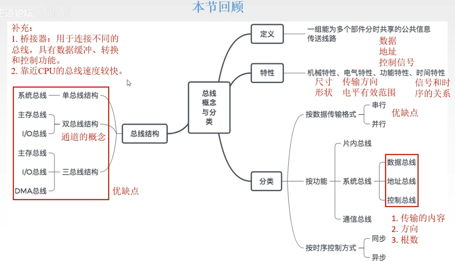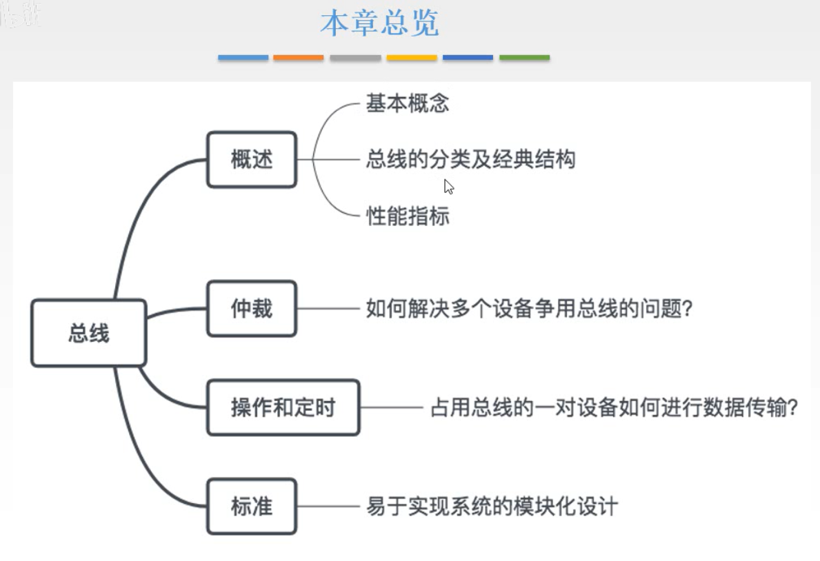 本章的知识点较少,其中总线仲裁及总线操作和定时方式是难点。本章内容通常以选择题的形式出现,特别是系统总线的特点、性能指标、各种仲裁方式的特点、异步定时方式及常见的总线标准和特点等。总线带宽的计算也可能结合其他章节出综合题