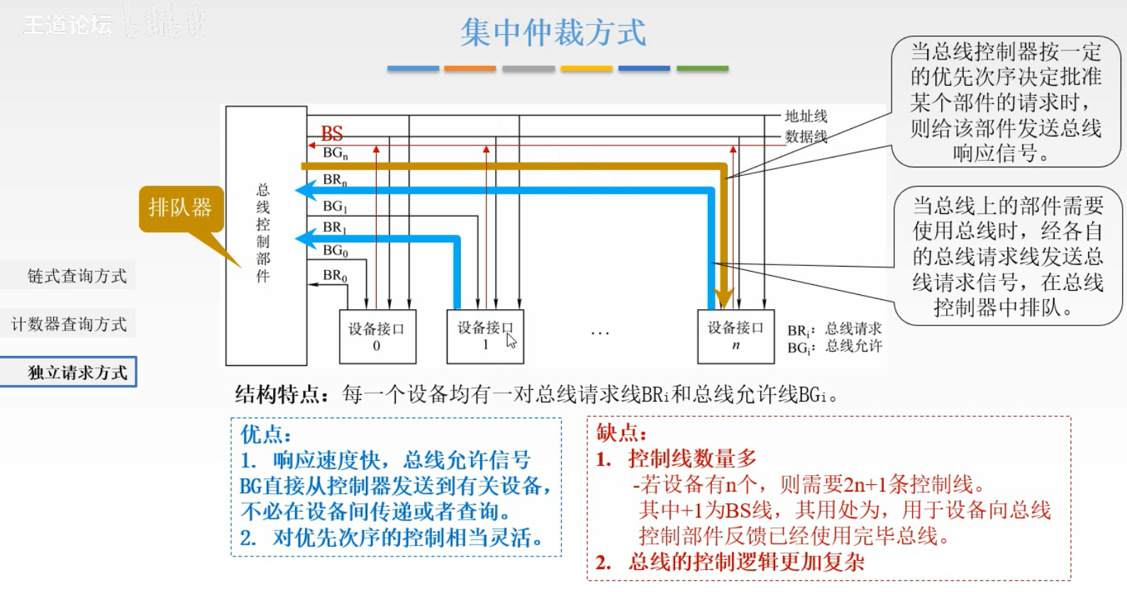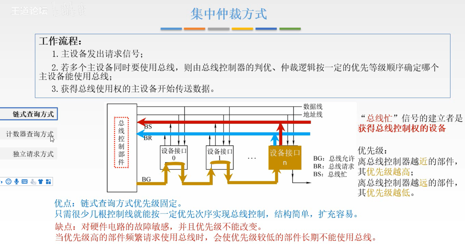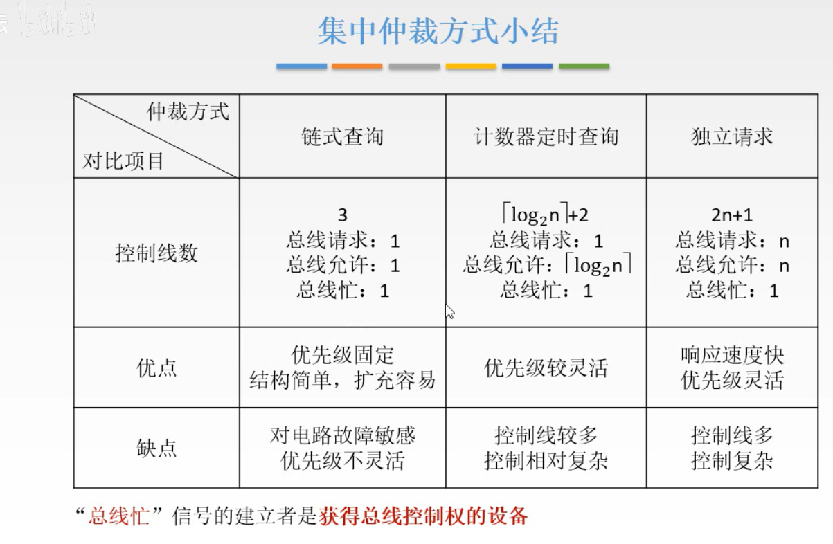 • 如果仲裁总线上的号优先级高,则它的总线请求不予响应,并撤销它的仲裁号;