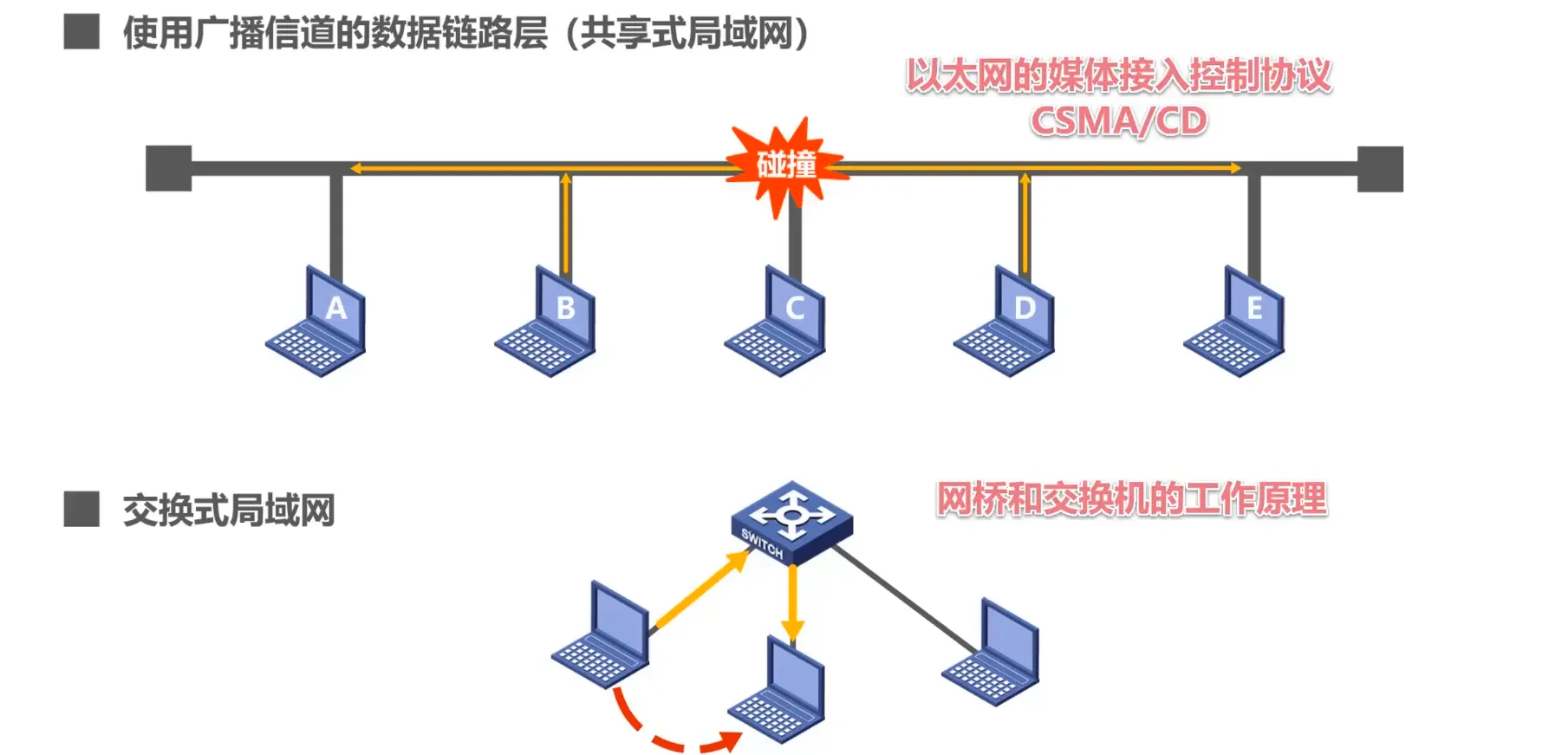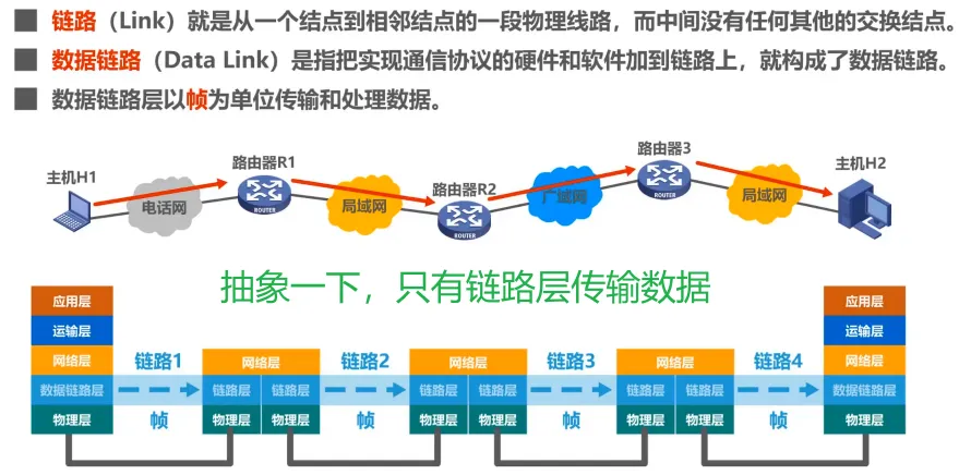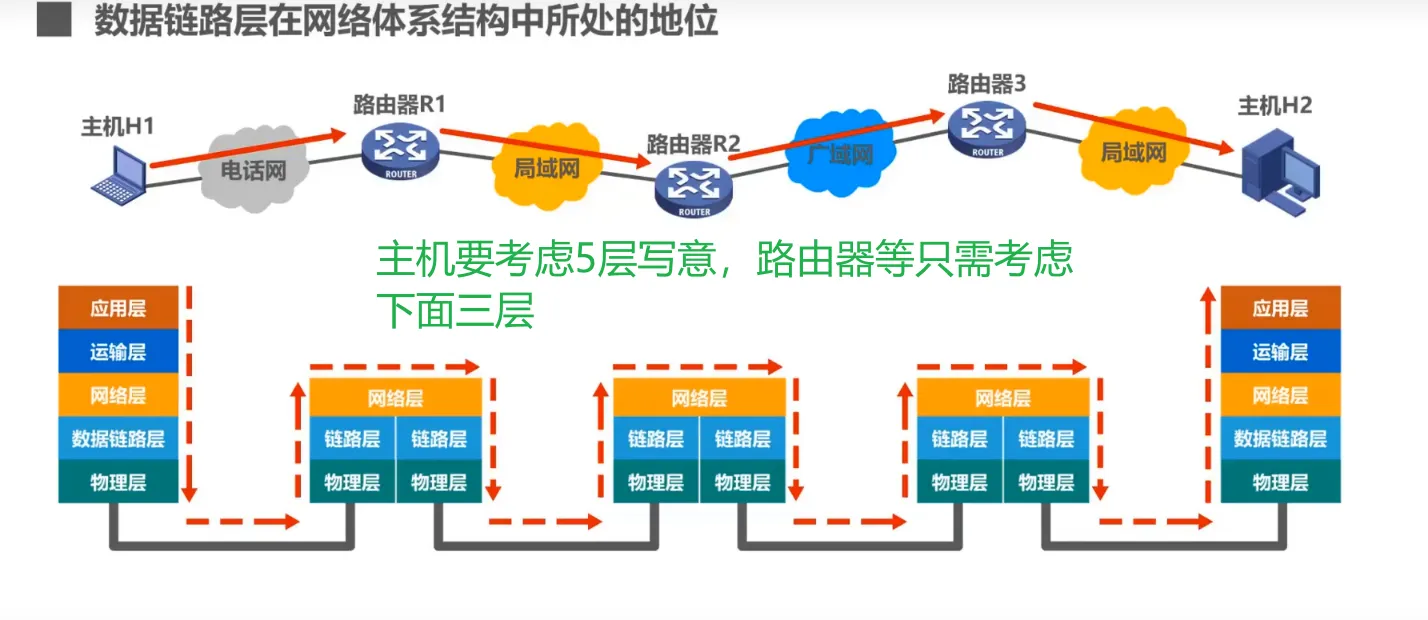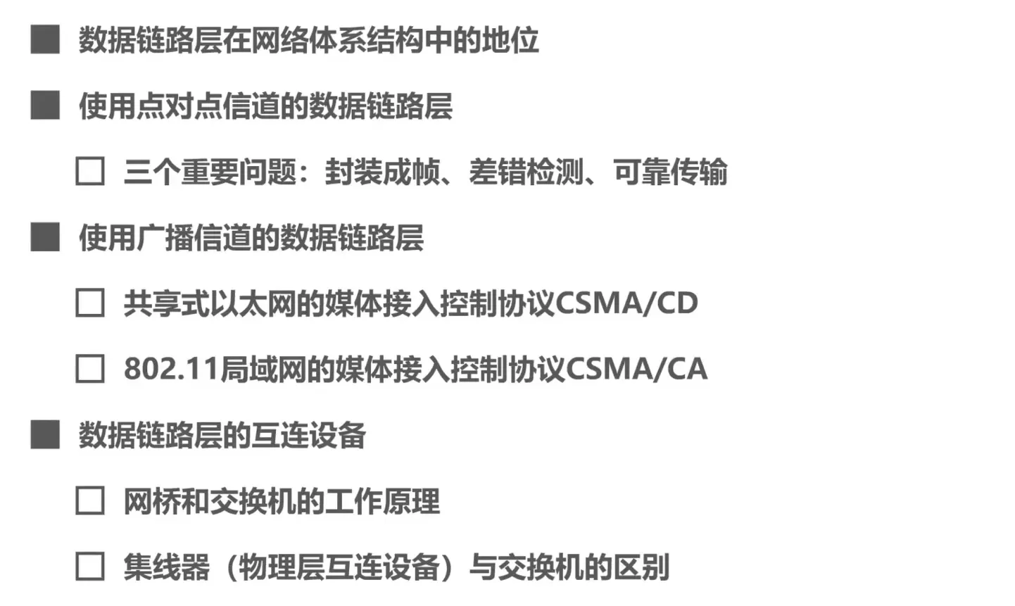 up:: 2.7-第2章物理层习题课 学习视频 3.1-数据链路层概述 笔记 说明:数据链路层重要问题 使用点对点信道传输方式 三个重要问题 封装成桢 差错检测 可靠传输 使用广播信道的数据链路层 如何确定发送与接收方 多台主机发送数据帧如何避免碰撞