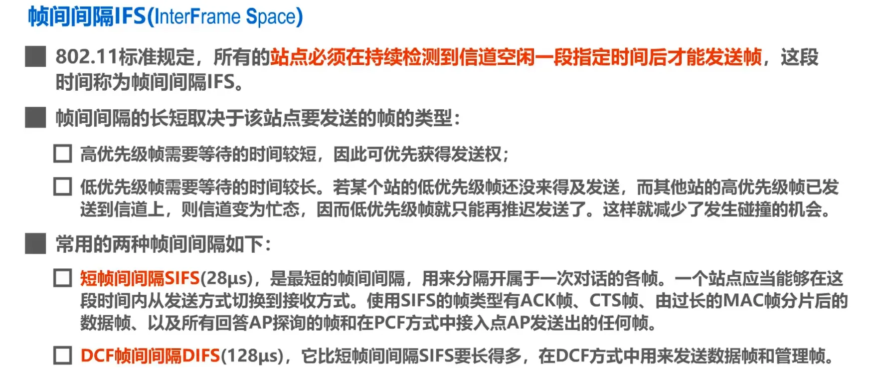 • 帧间间隔IFS