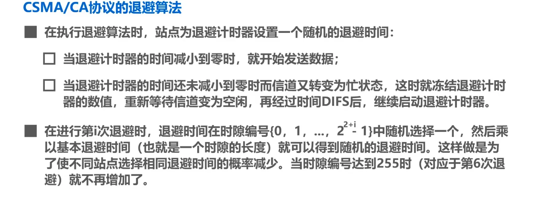• CSMA/CA的退避算法