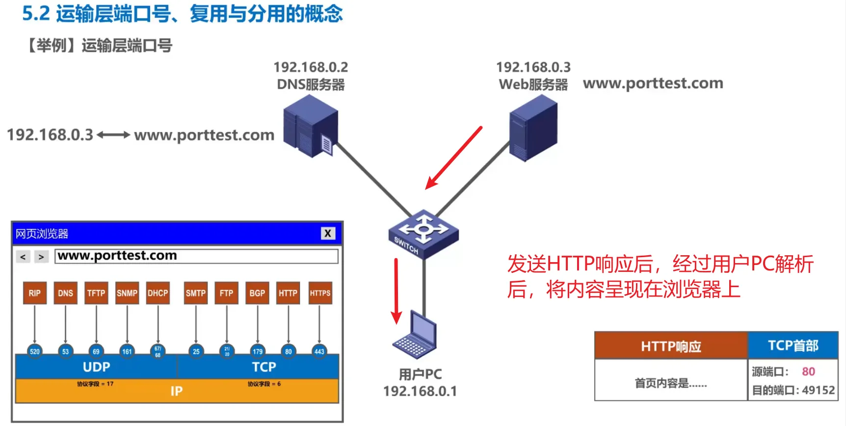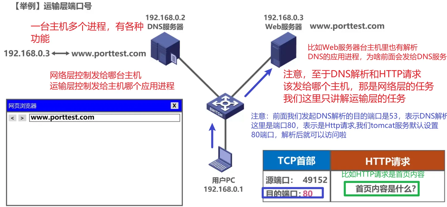 up:: 5.1-运输层概述 学习视频 5.2-运输层端口号复用与分用的概念 笔记 端口号 分用和复用 常用协议以及熟知端口 举例 解析DNS DNS默认端口是53 之后将UDP数据报封装在本机中通过以太网发送到DNS服务器 HTTP请求