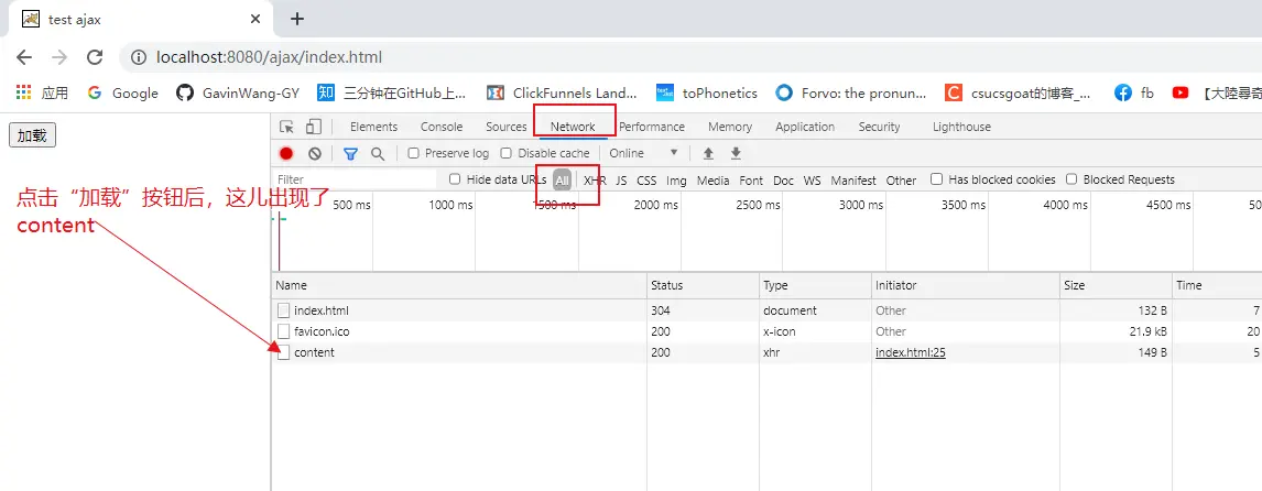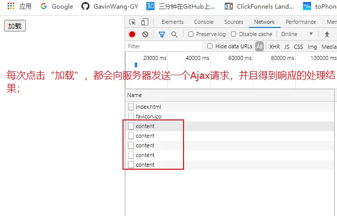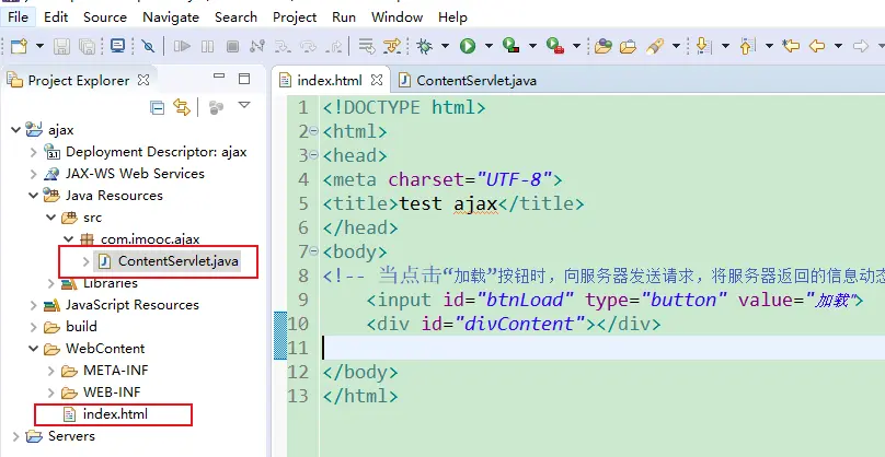 目前的需求是:当点击“加载”按钮时,向服务器发送请求,将服务器返回的信息动态地写入到divContent这个容器中;即局部刷新和加载: