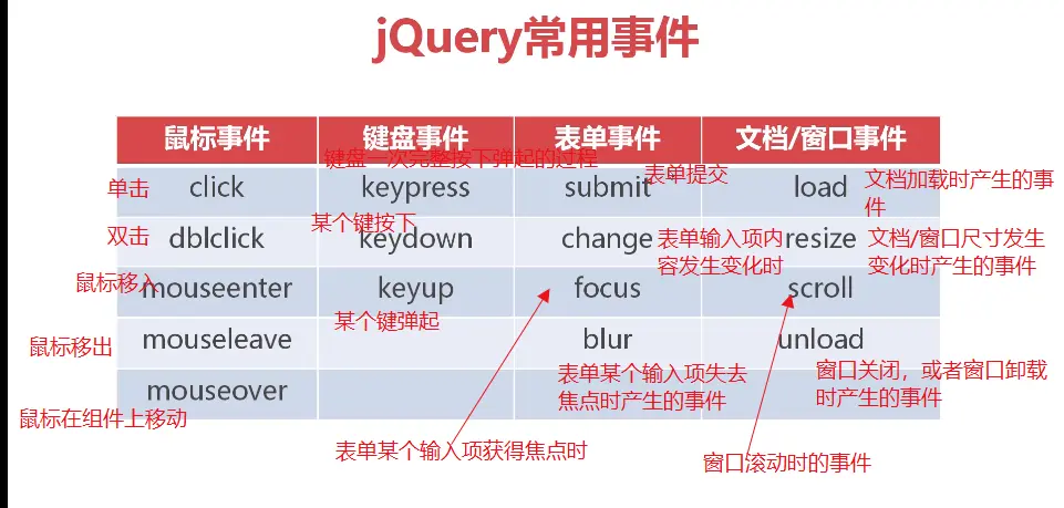 jQuery对事件提供了完整的支持,并简化了使用办法;