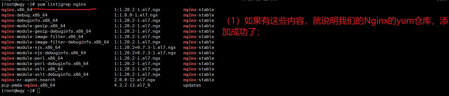 3.然后,使用【yum list | grep nginx】,确认Nginx的yum源是否添加成功了;