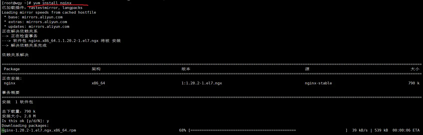 然后,我们就可以通过nginx的yum源仓库,去安装Nginx了;