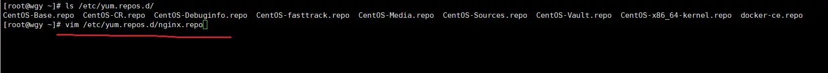 2.然后,使用【vim/etc/yum.repos.d/nginx.repo】,在/etc/yum.repos.d/目录下创建nginx.repo,添加Nginx的yum源;