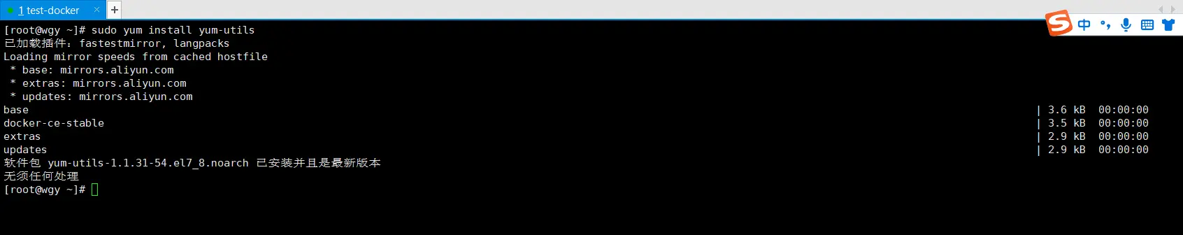 说明: 这儿,我们就使用在【Docker入门在LinuxCentOS7中安装docker】中,演示docker时,创建的test-docker那个CentOS实例了;