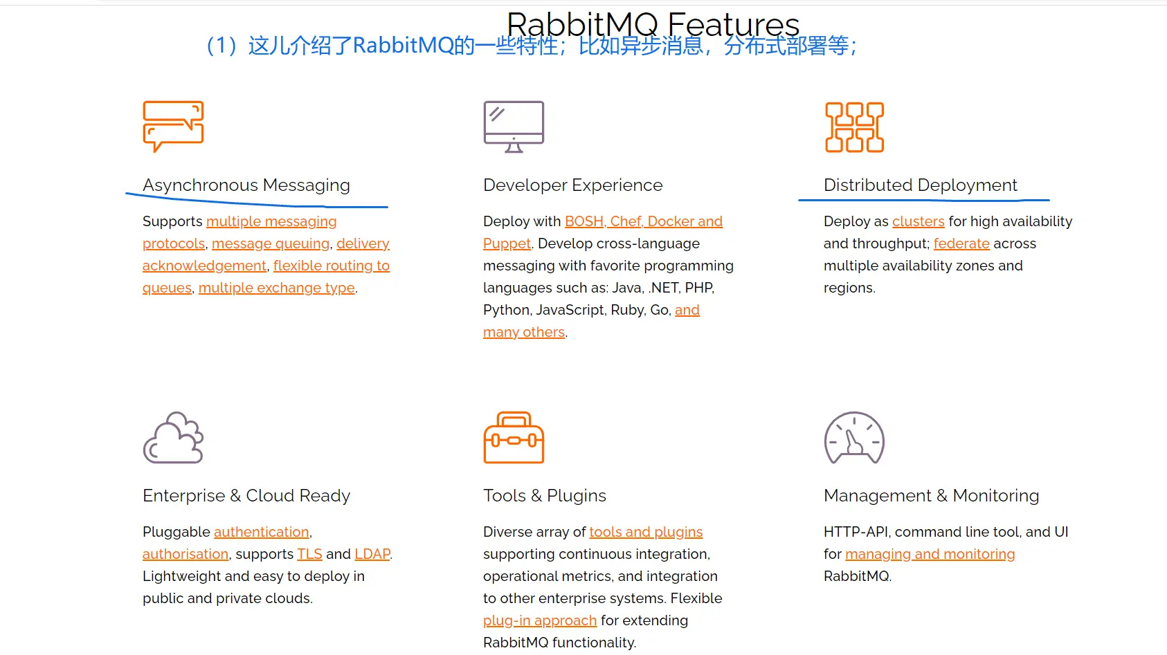 RabbitMQ是消息队列的一种(还有其他消息队列,比如kafka,RoketMQ等),其有以下5个特点;