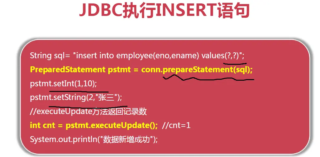 (2)新增使用PreparedStatement对象的executeUpdate()方法;