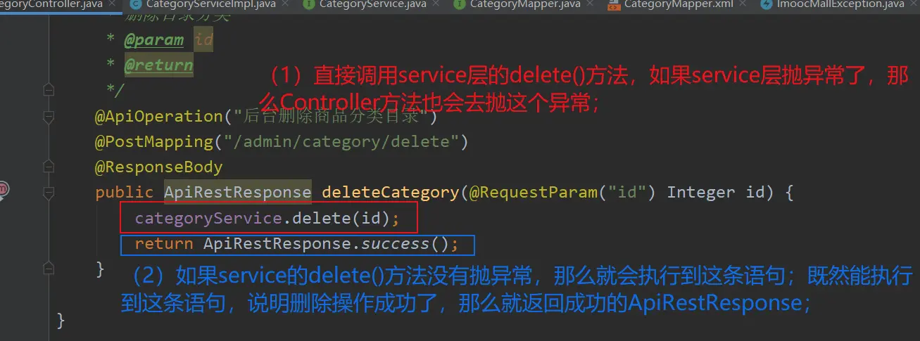 2.在CategoryController中,编写删除分类目录的方法:deleteCategory()方法;