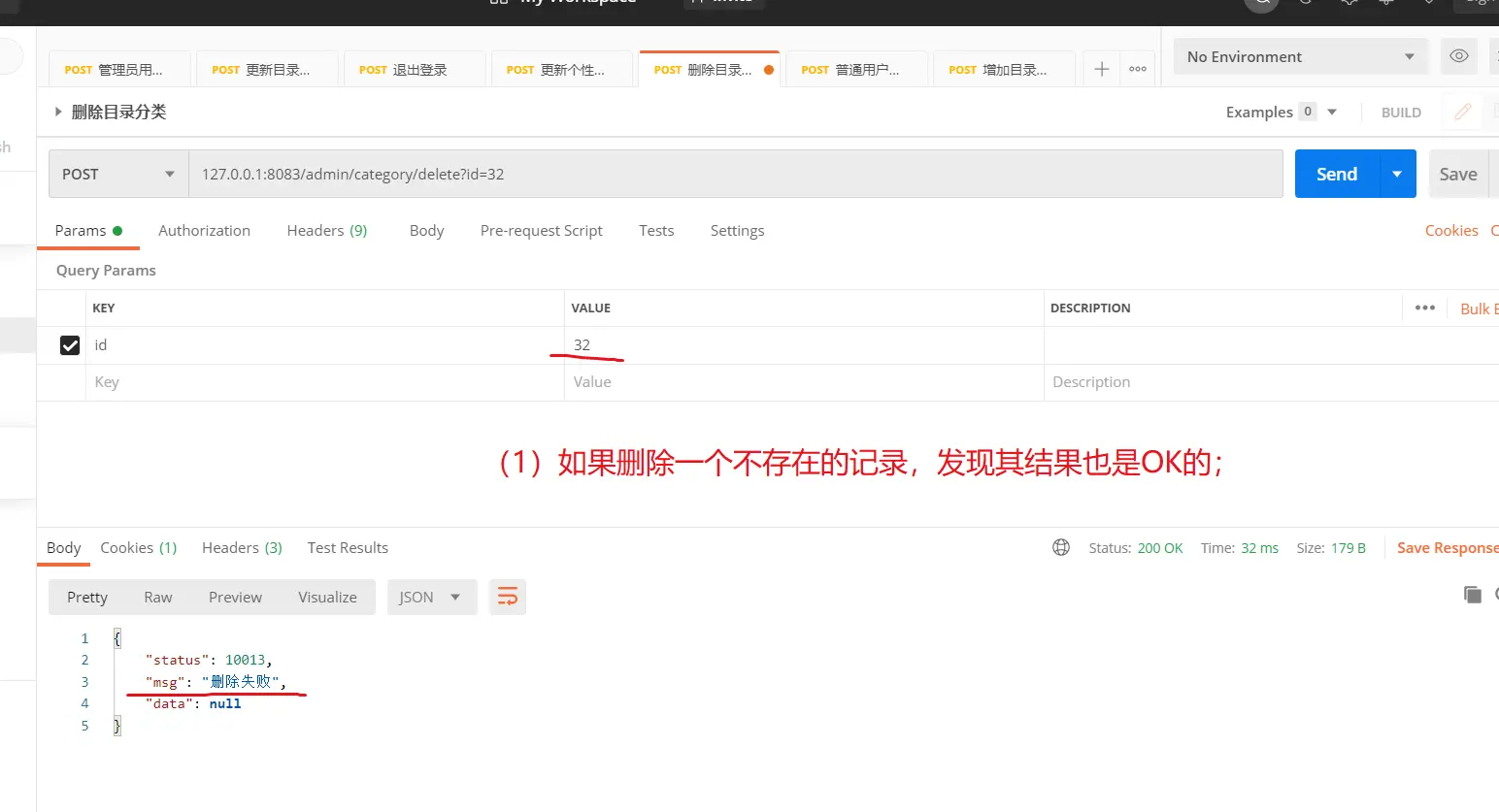 (1) 在删除的时候,我们先根据传的id,去数据库中查,如果查到了有这条记录,再去删;如果没查到,就返回删除失败的信息;