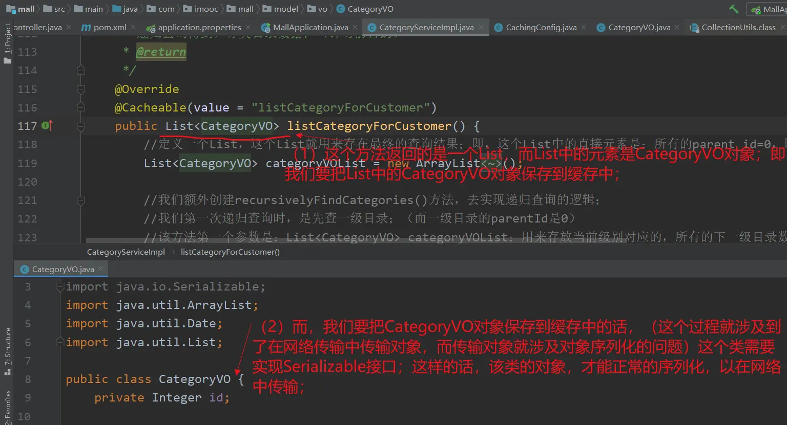 java.io.NotSerializableException: com.imooc.mall.model.vo.CategoryVO