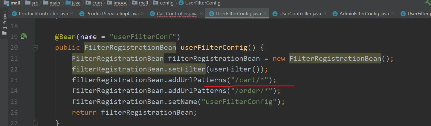 filterRegistrationBean.addUrlPatterns("/cart/*");
