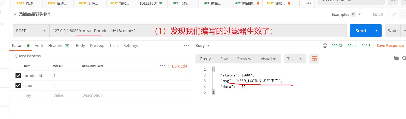 (3) 这儿我们并没有仔细区分是管理员用户还是普通用户;只要当前有用户登录,就允许其访问【购物车模块】的接口;