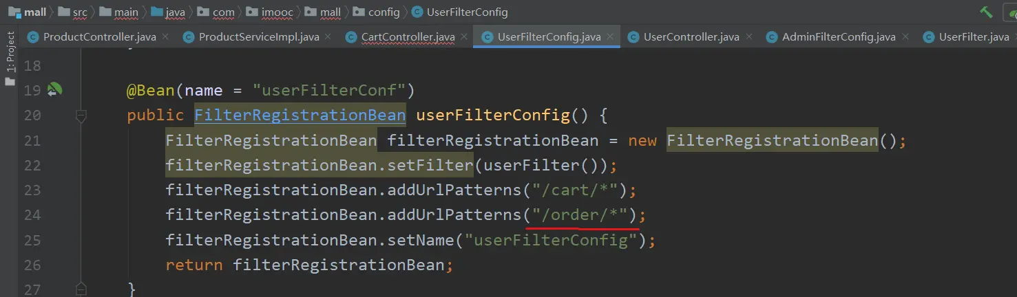 filterRegistrationBean.addUrlPatterns("/order/*");