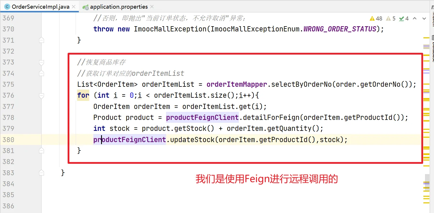 以前使用Feign进行库存返还