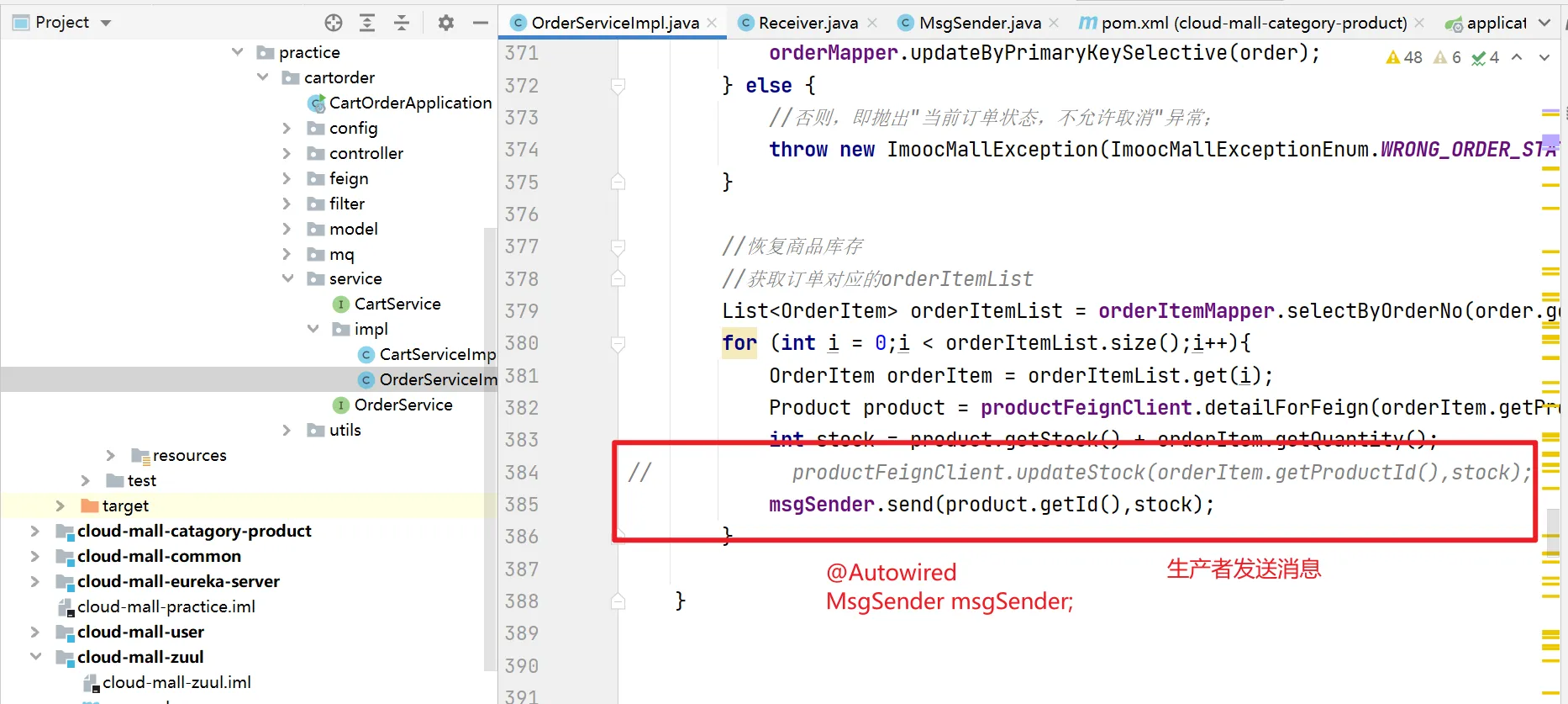 正式使用MQ开发返还库存功能