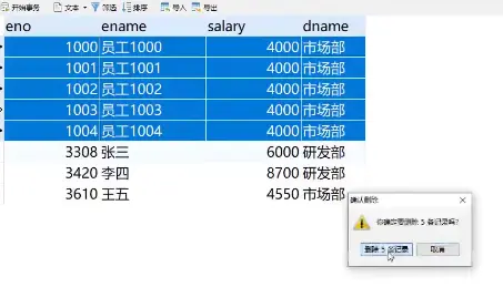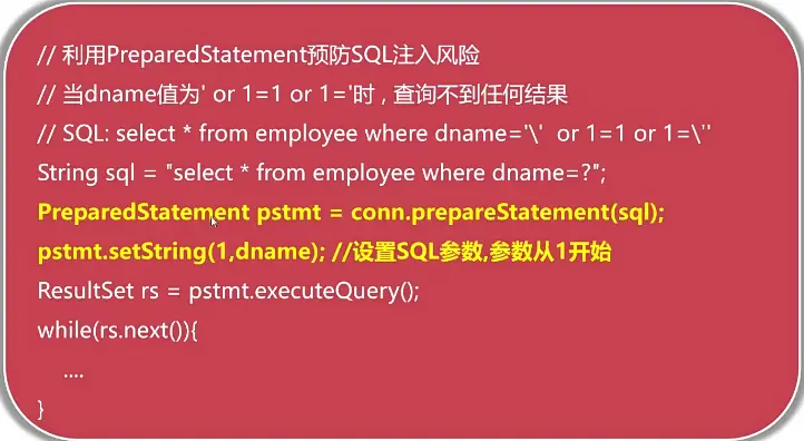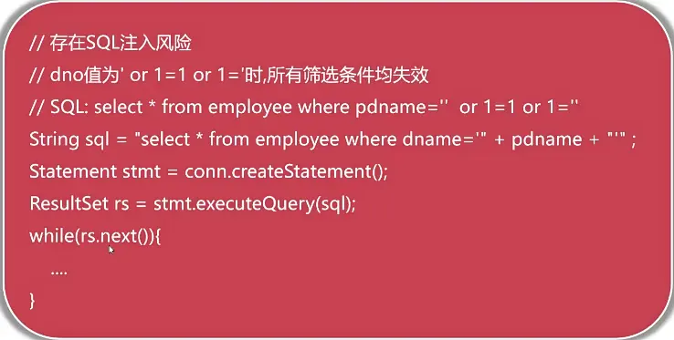 rs = stmt.executeQuery("select * from employee where dname='" + pdname + "'");- 遍历查询结果