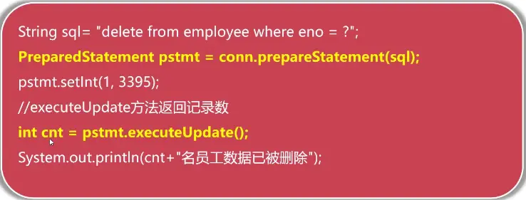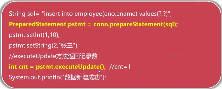 Integer eno = rs.getInt(1);//JDBC中字段索引从1开始,而非0