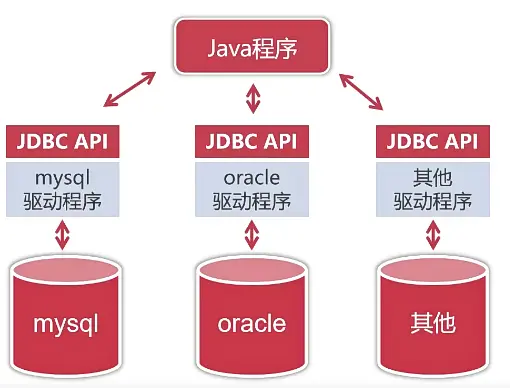 JAVA无法为每种数据库提供对应的接口,只能提供统一接口JDBC,让每种数据库使用对应的厂商驱动即jar包进行对接访问,JDBC就能通过这个驱动识别数据库并对其访问操作了平台提供标准,厂商提供实现