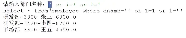 System.out.println("select * from employee where dname='" + pdname + "'");