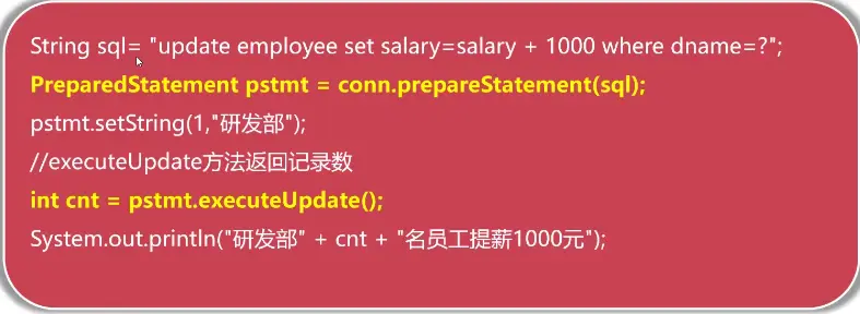 String sql1 = "update employee set salary=salary+1000 where eno=?";