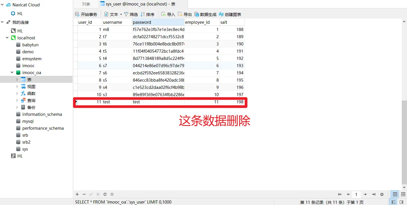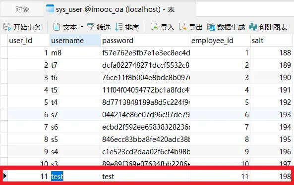 为了便于测试,数据库添加test用户