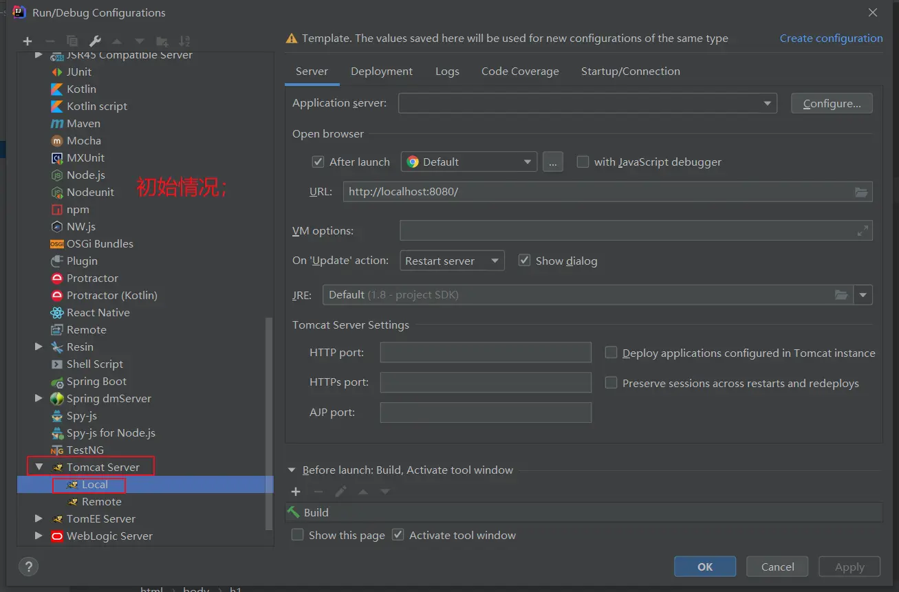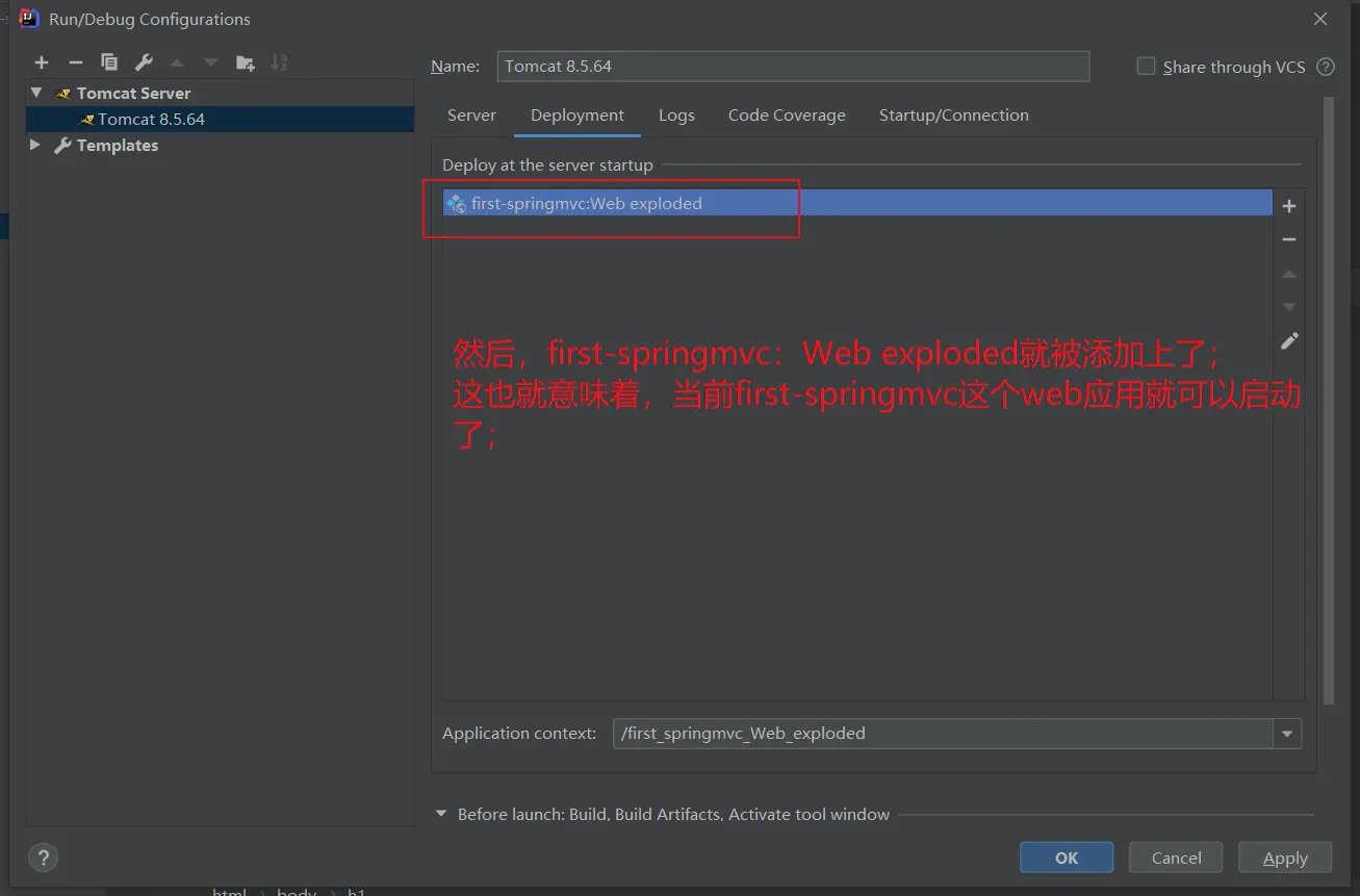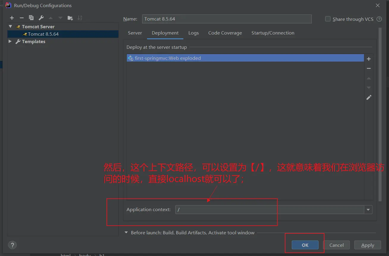 上面设置好了之后,点击OK;但是,目前我们只是设置了Templates这个模板;当前的web应用还不能运行;还要基于这个设置好的Template模板,去设置启动项;