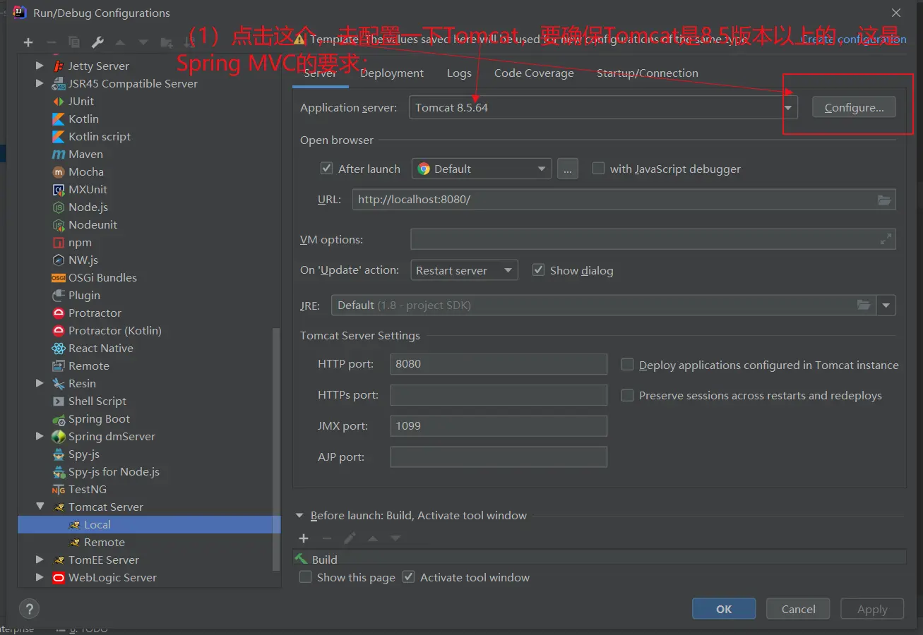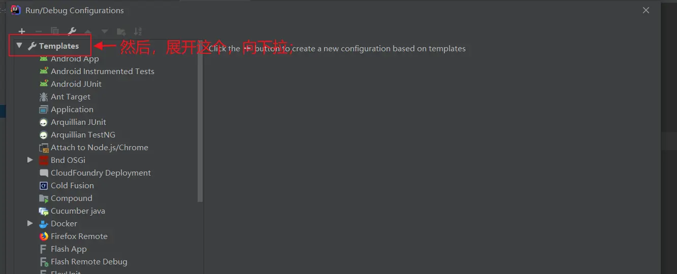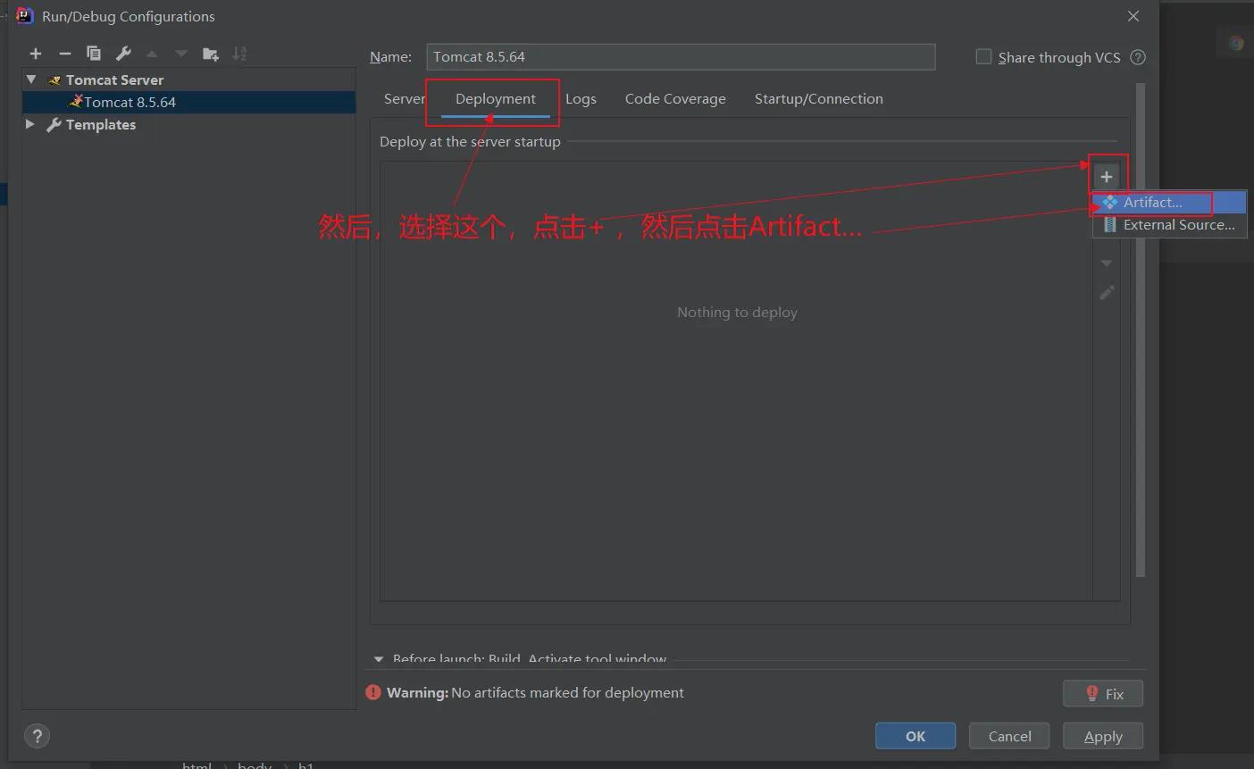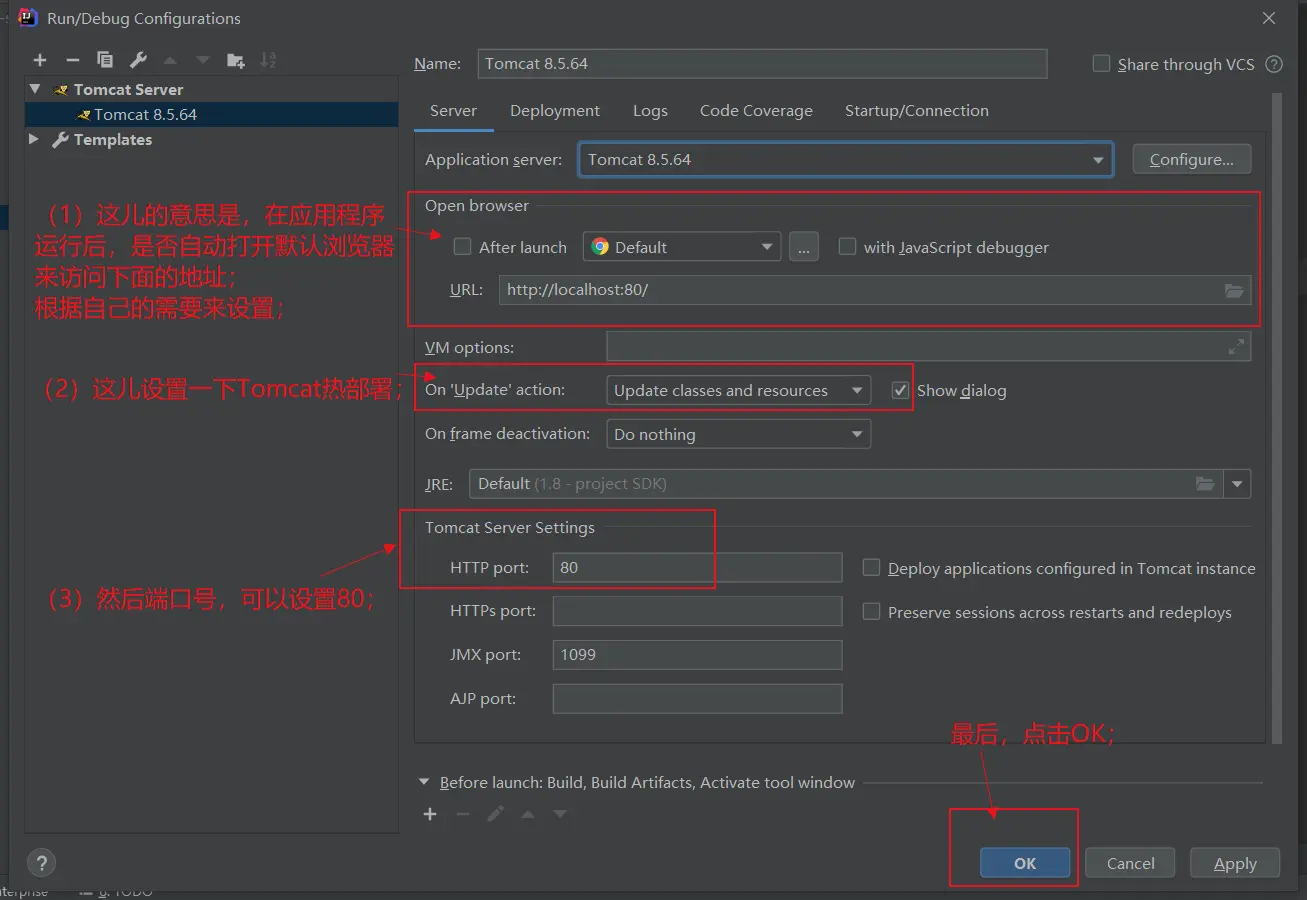 上面设置好了之后,点击OK;但是,目前我们只是设置了Templates这个模板;当前的web应用还不能运行;还要基于这个设置好的Template模板,去设置启动项;