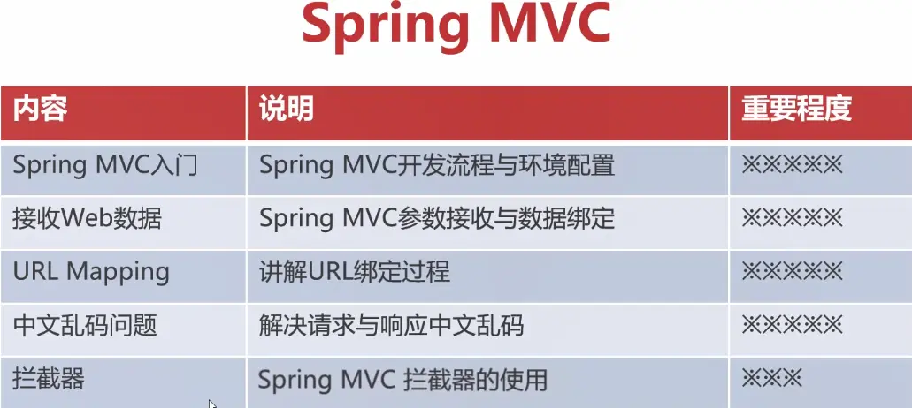 ●主要内容包括:【Spring MVC入门与数据绑定】,【Restful开发风格】,【Spring MVC拦截器】;