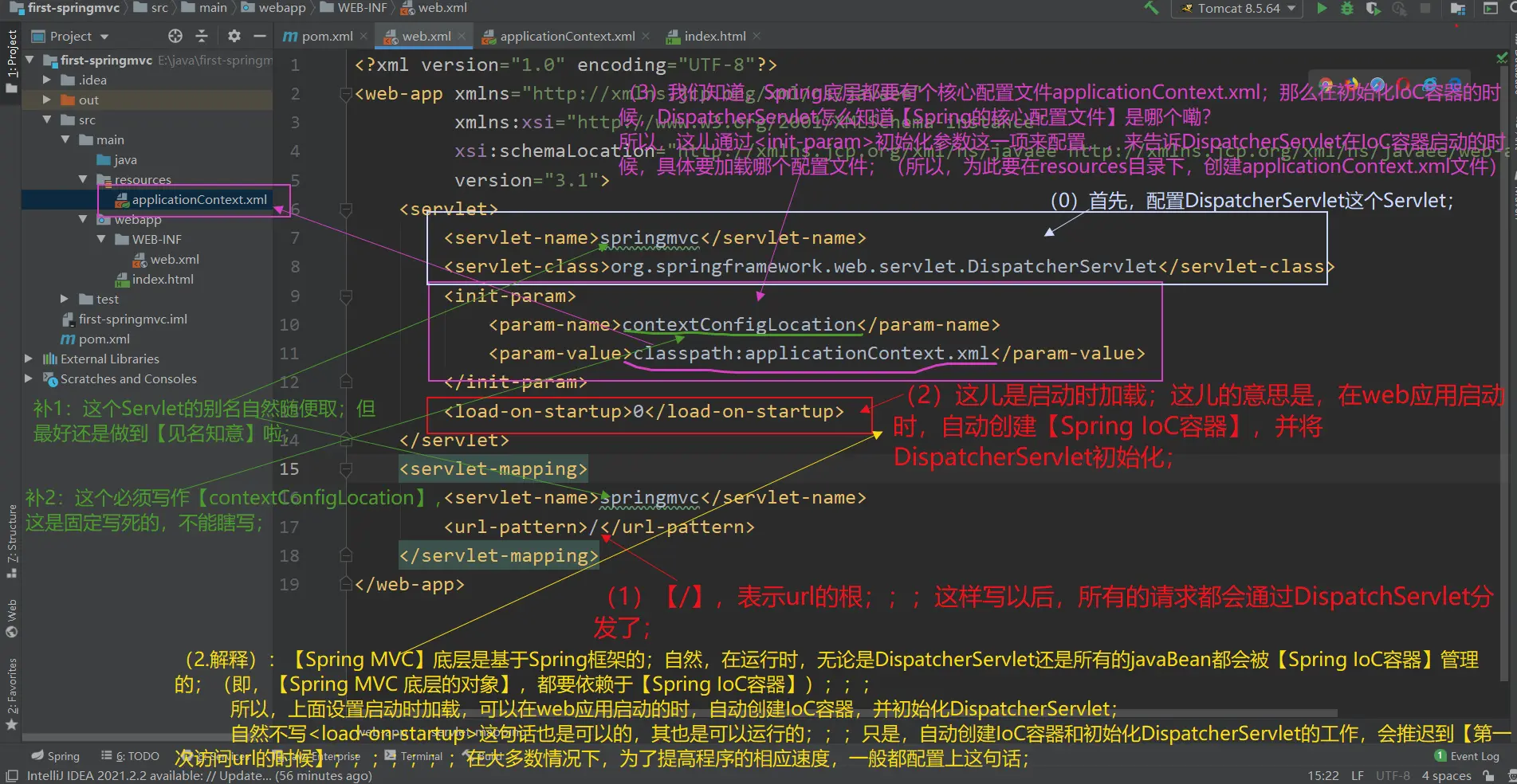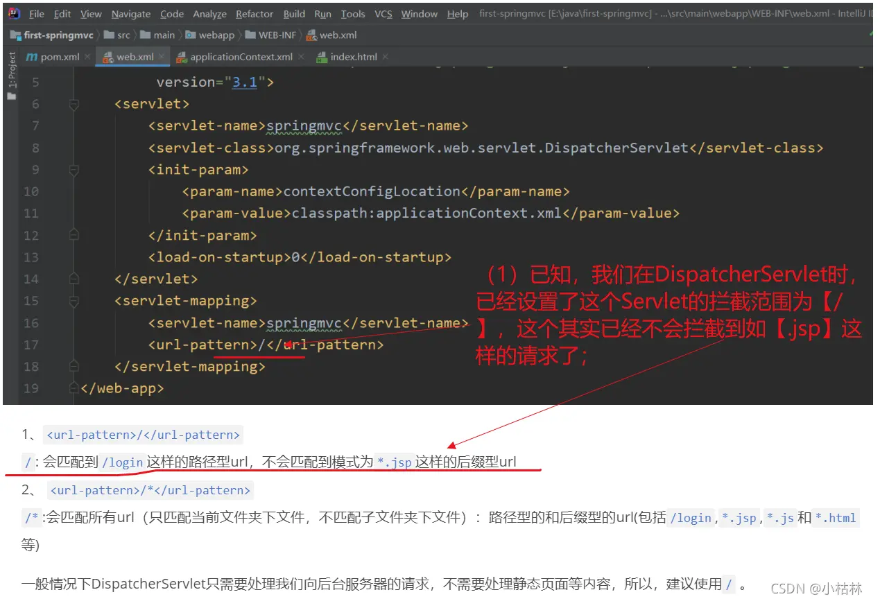 (2) 在【SpringMVC】中有一个核心的Servlet:DispatcherServlet;我们需要在web.xml中配置这个Servlet