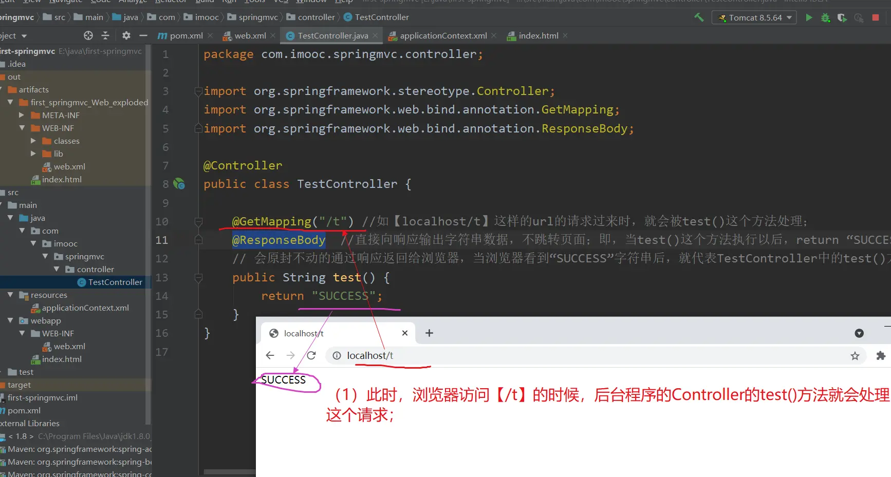(2) 本篇博客开始,介绍【Spring MVC数据绑定】;然后本篇博客介绍其中的URL映射,URL映射是指【Spring MVC中,Controller控制器的某一个方法】如何和【url】绑定在一起;(前面接触了【@GetMapping(“/t”)注解】【@ResponseBody注解】,自然还有其他注解可以完成类似的工作) (3)本篇博客内容其实很少,就是设置Controller中方法的url啦;