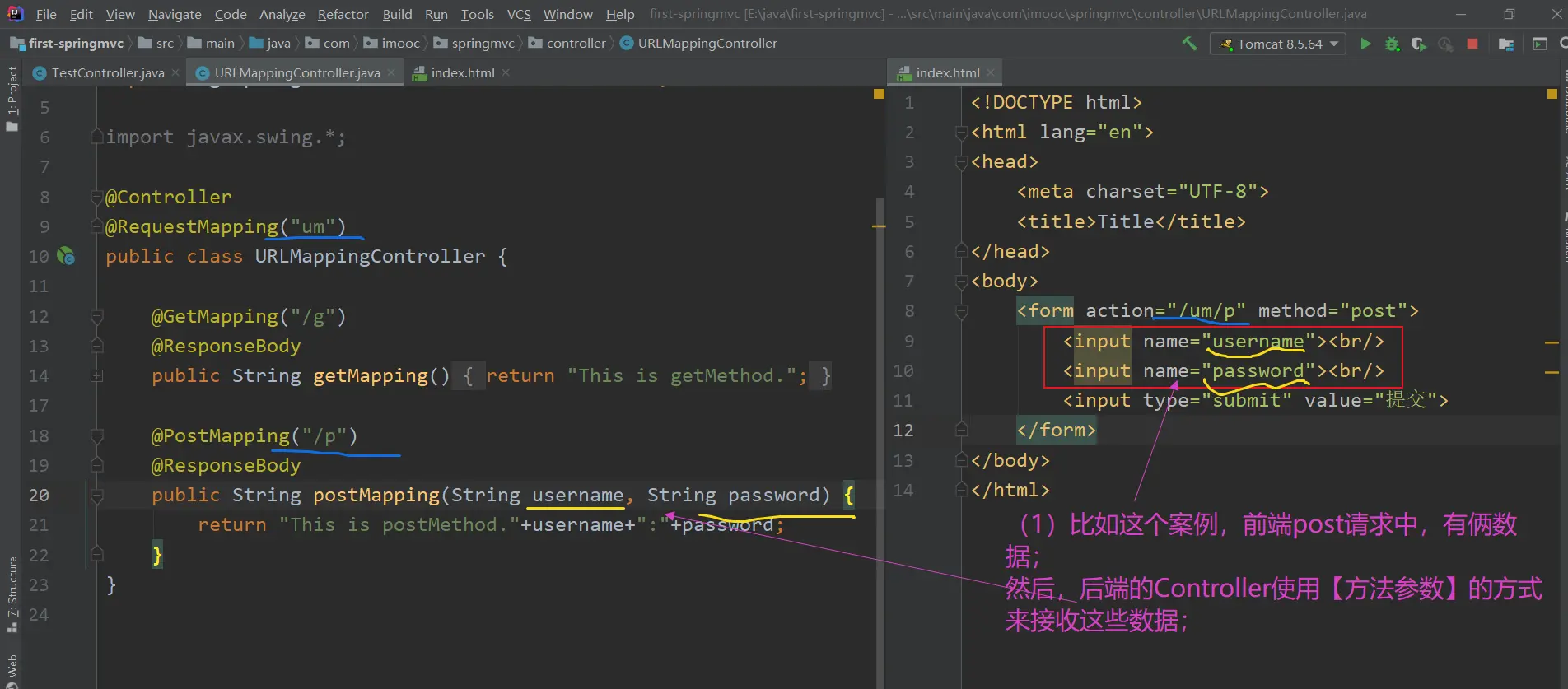 (2) 在大部分情况下,请求被发到后端时,这个请求常包含一些数据;这些数据通常是【请求参数的形式】,比如用户登录时的用户名和密码就会以【post请求参数的形式】发送到后台Controller的指定方法中;本篇博客就介绍【后台的Controller方法】如何获取【前端传过来的,请求中的数据】;