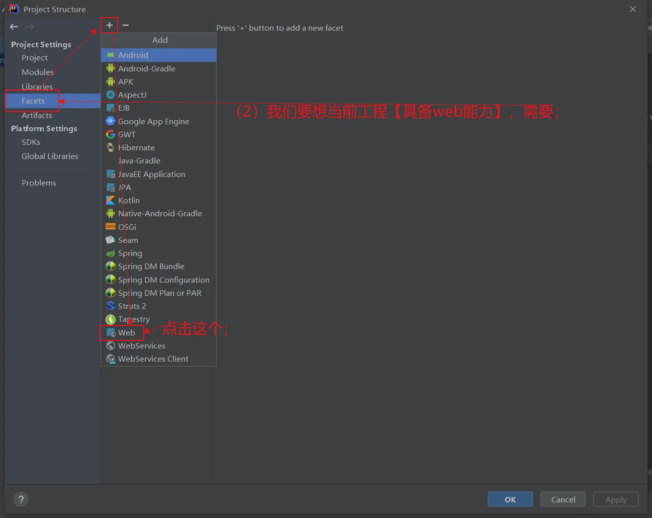 (1.1) 目前关于Facets和Modules;似乎可以这样理解,Facets可以设置Modules中要使用哪些技术、框架、语言等内容;具体进一步理解,待以后再说吧…………