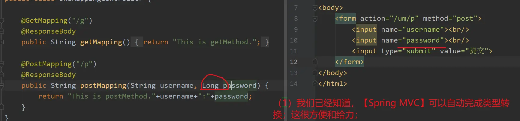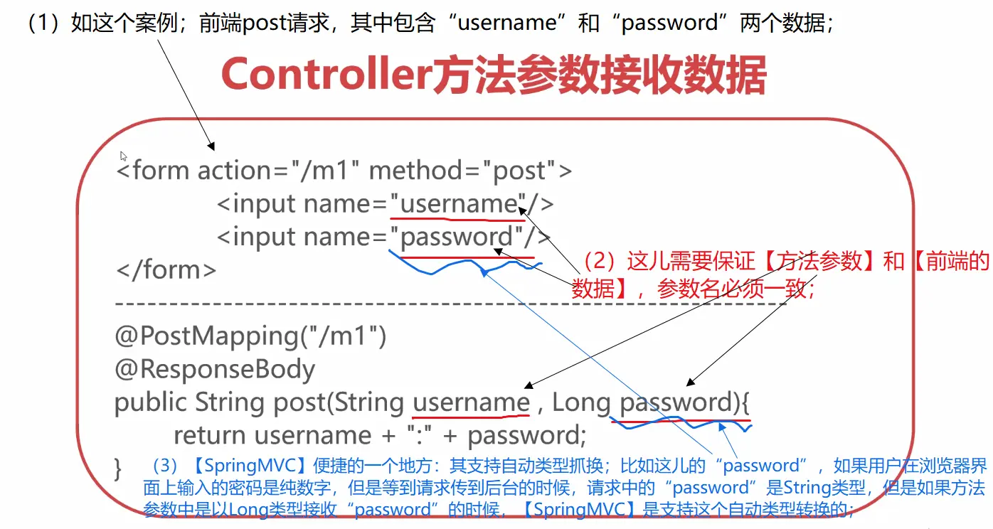 (2) 【Spring MVC获取请求中数据】:直接在方法参数中写上就行了;;;由此感受到了【Spring MVC简化web开发难度】的意味;
