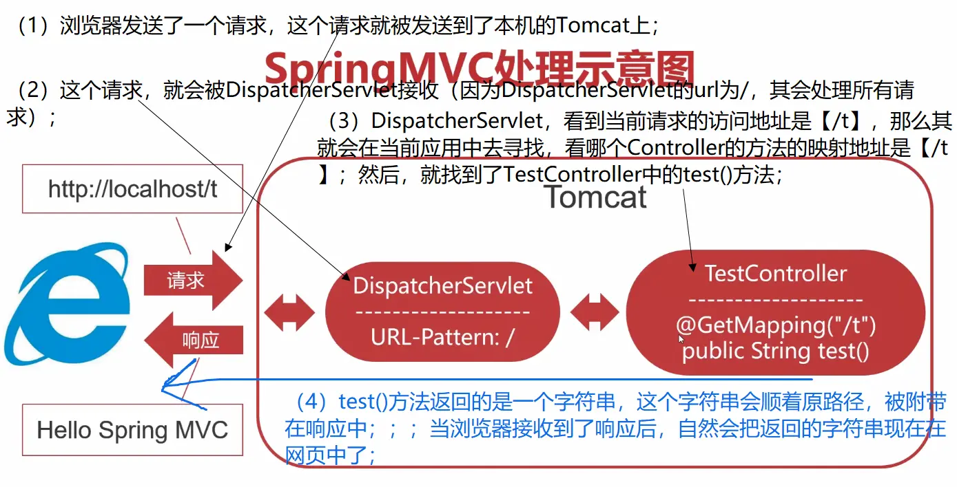 ● 如上案例中,【DispatcherServlet】看成【公司的前台】,那么,【Controller中的某一个具体的处理方法】可以看成是【公司内部不同的人】;