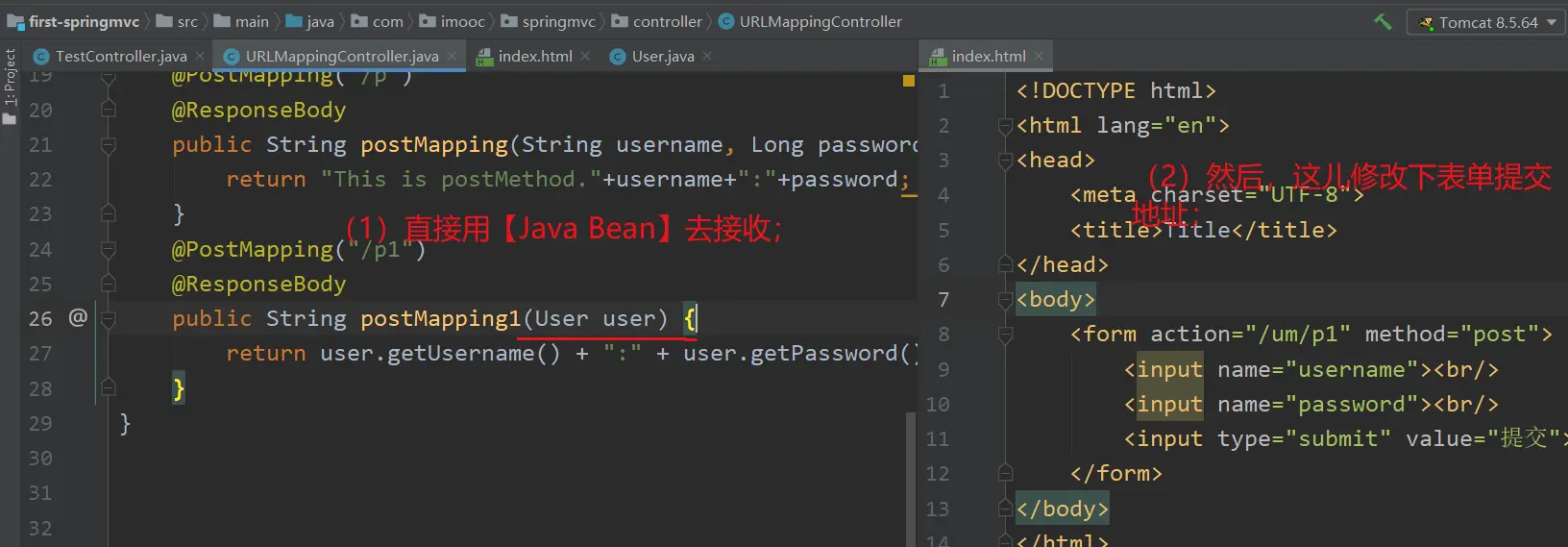 (1.1) 使用【Java Bean】接收:适合用于接受如【档案表】,【用户信息】这些有很多数据的大表单;