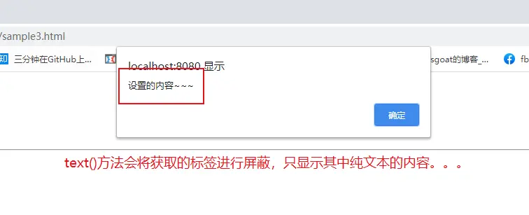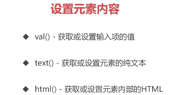 (2)也包括<p>、<span>等元素;获取、设置这些元素的文本值;text()方法、html()方法。