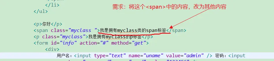 注意下面:$(“span.myclass”)标签和类选择器组合使用的方式;