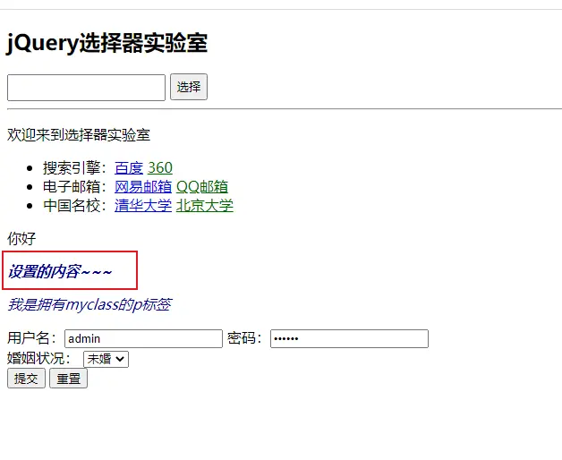 (1)页面中有很多元素,包括表单中的输入项,如输入文本框等;获取、设置、输入文本框的值;val()方法。