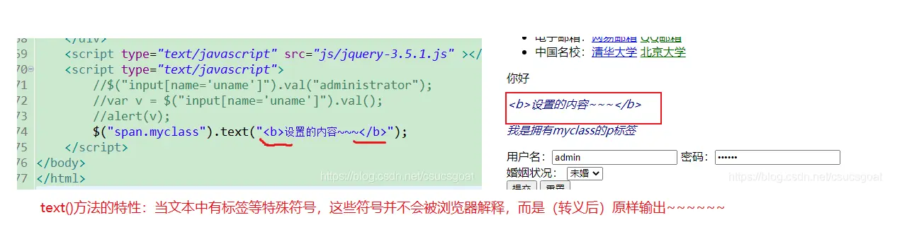 </script>发现,html()方法,会让浏览器解释文本中的标签