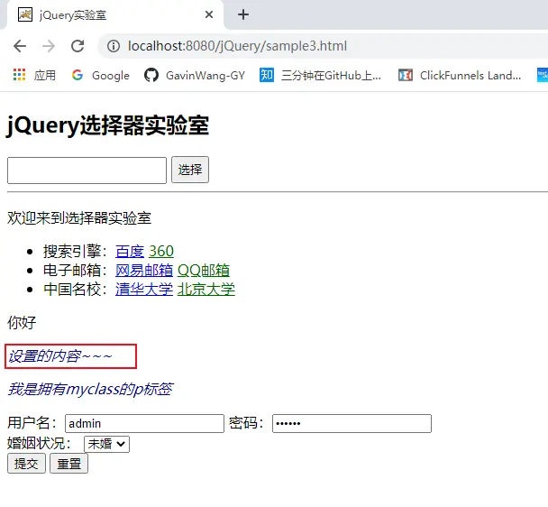 1.示例1:val():设置输入项的值(其实大部分情况下就是设置表单中的输入文本框)