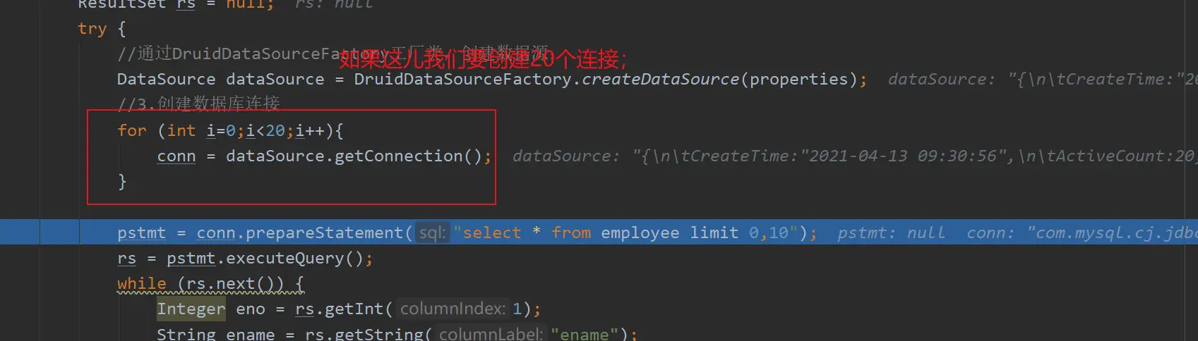 目前我的理解,在实际使用中。使用了Druid以后,工程启动之后,那些数据库连接就已经存在了。然后在需要使用数据库连接的时候,通过上面的步骤,直接去获取连接就好了。