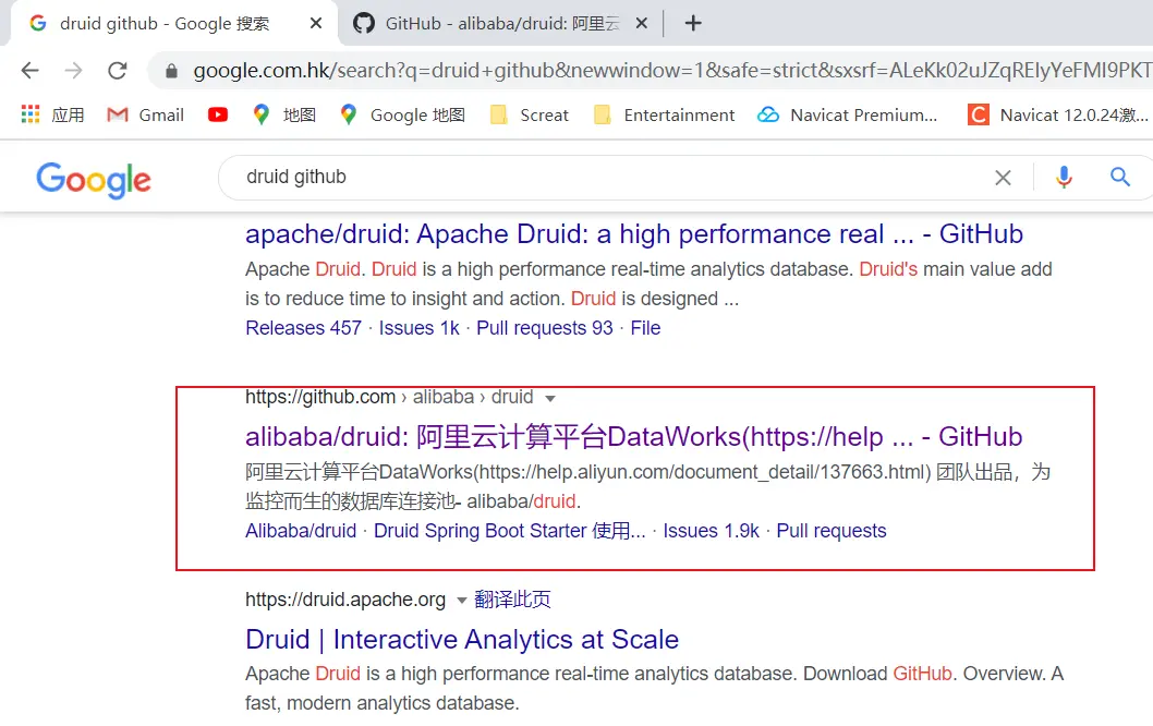 https://repo1.maven.org/maven2/com/alibaba/druid/为druid的下载链接;